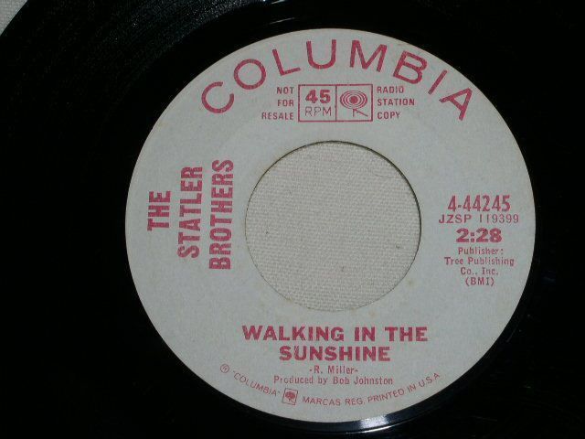 This is the original, vintage promotional 45 rpm release of The Statler Brothers', "You Can't Have Your Kate And Edith, Too". Flipside: "Walking In The Sunshine. Record label Columbia 4-44245.