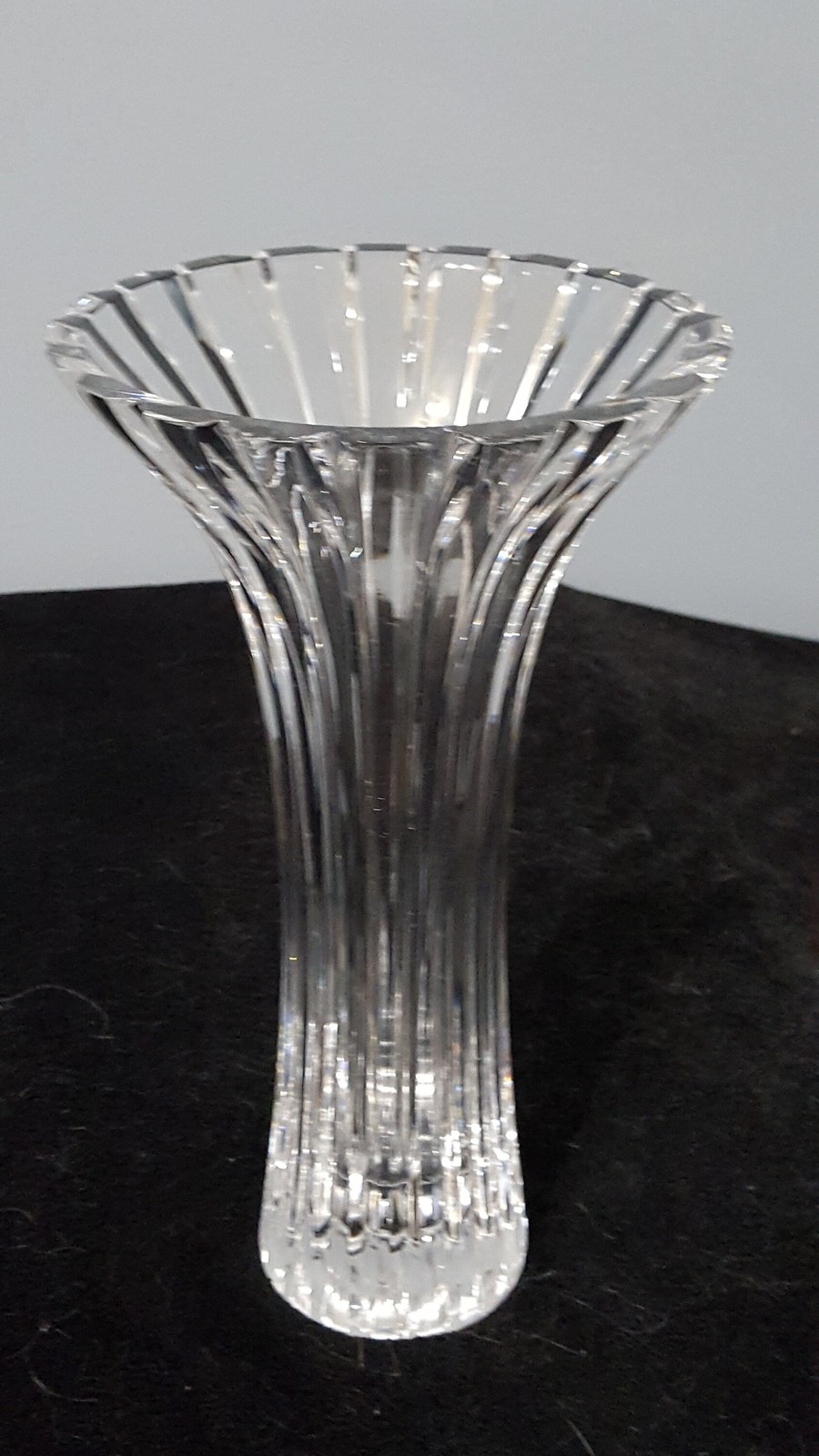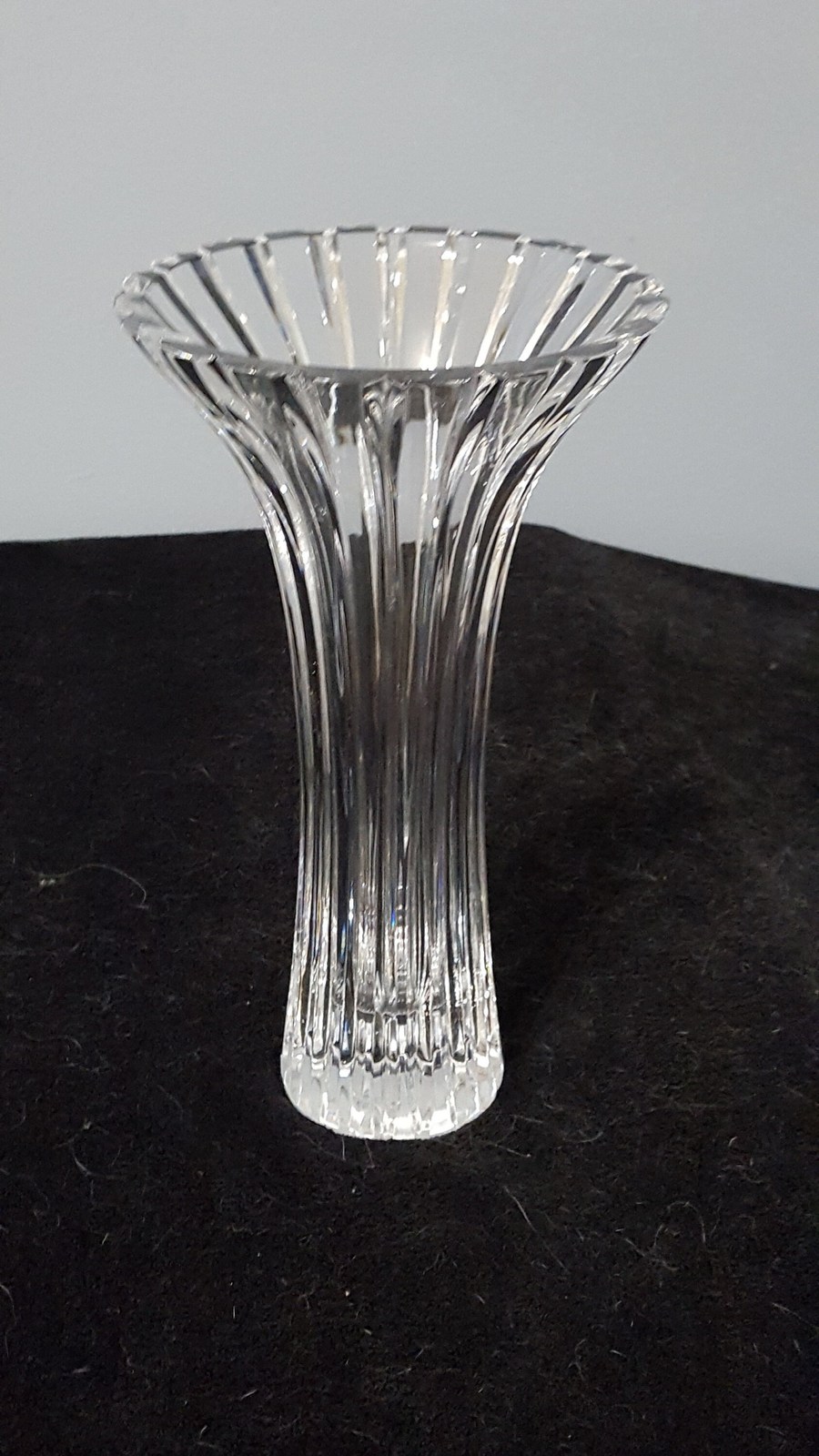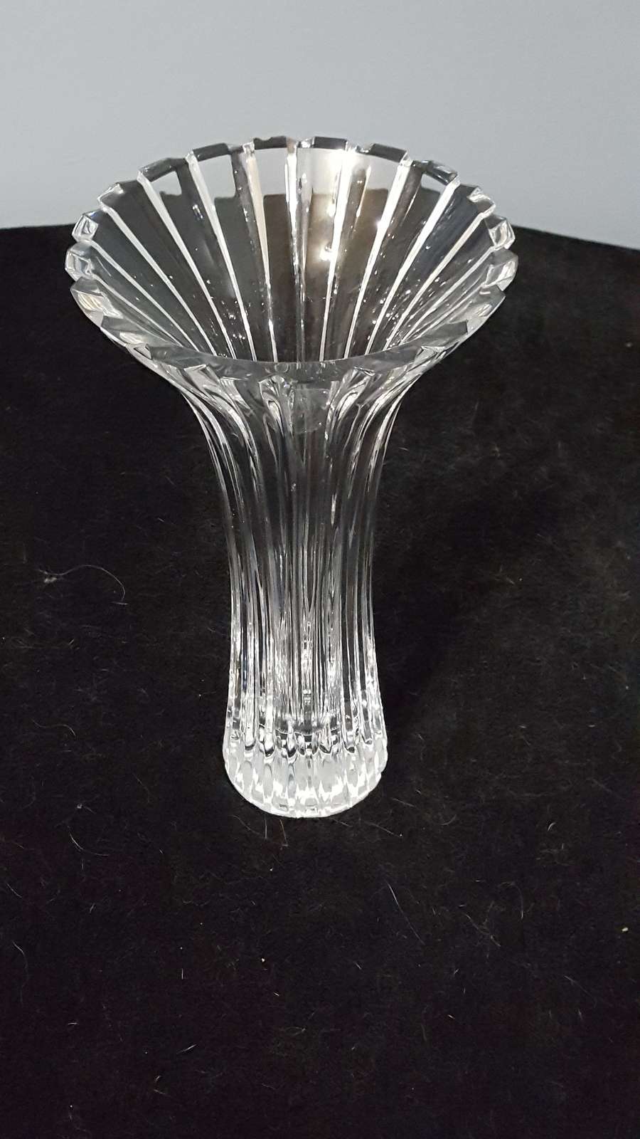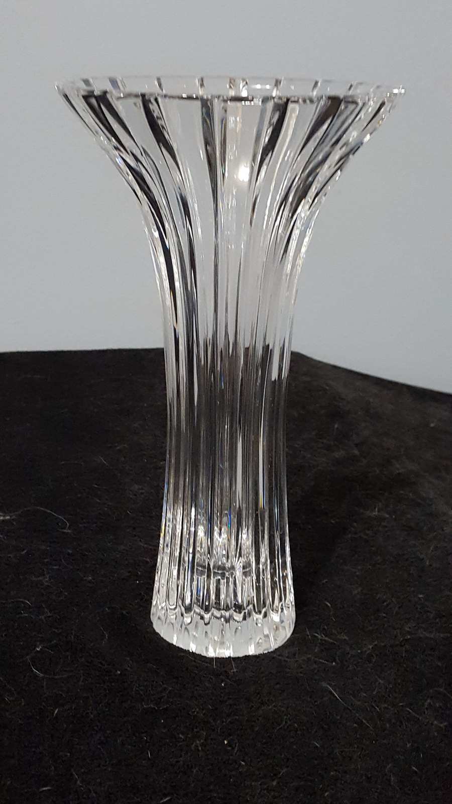 Vintage Ceskci Ribbed & Flared Bohemian Hand Blown 24% Heavy Lead Crystal Vase