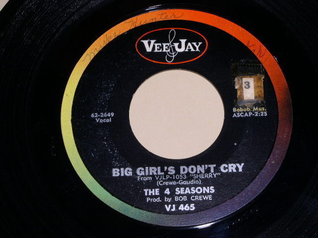 THE 4 SEASONS BIG GIRL'S DON'T CRY VINTAGE 45 RPM PHONOGRAPH RECORD VEE JAY