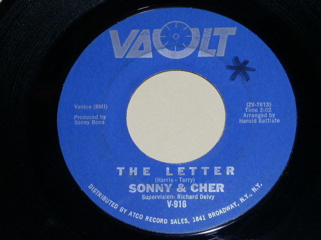 SONNY & CHER THE LETTER VINTAGE 45 RPM PHONOGRAPH RECORD VAULT