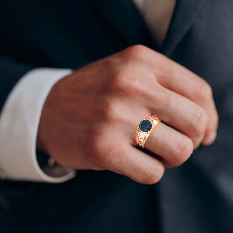 Men's Tire Tread Lab-Created Sapphire Diamond Ring In Solid 14k Rose Gold