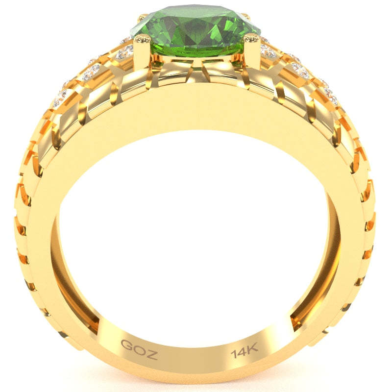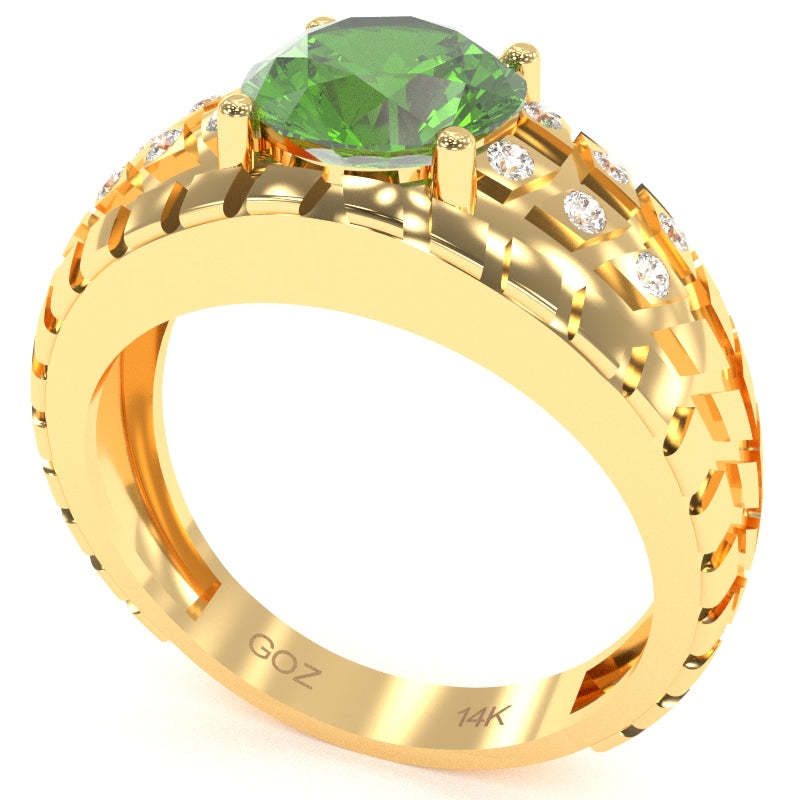 Men's Tire Tread Peridot Diamond Ring In Solid 14k Yellow Gold