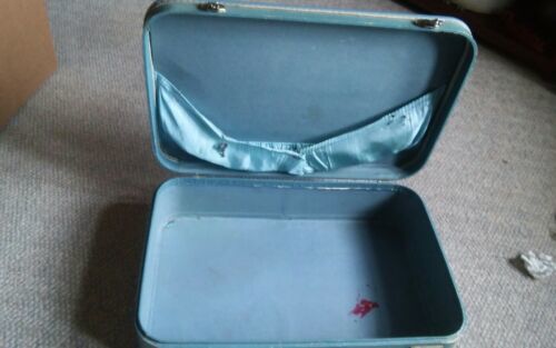 Vintage Hardside Suitcase Blue 21x13.5 Lockable WIth Key