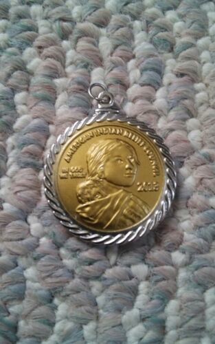 000 2013 Round Coin Pendant American Indian Relief Council Silver Tone & Gold