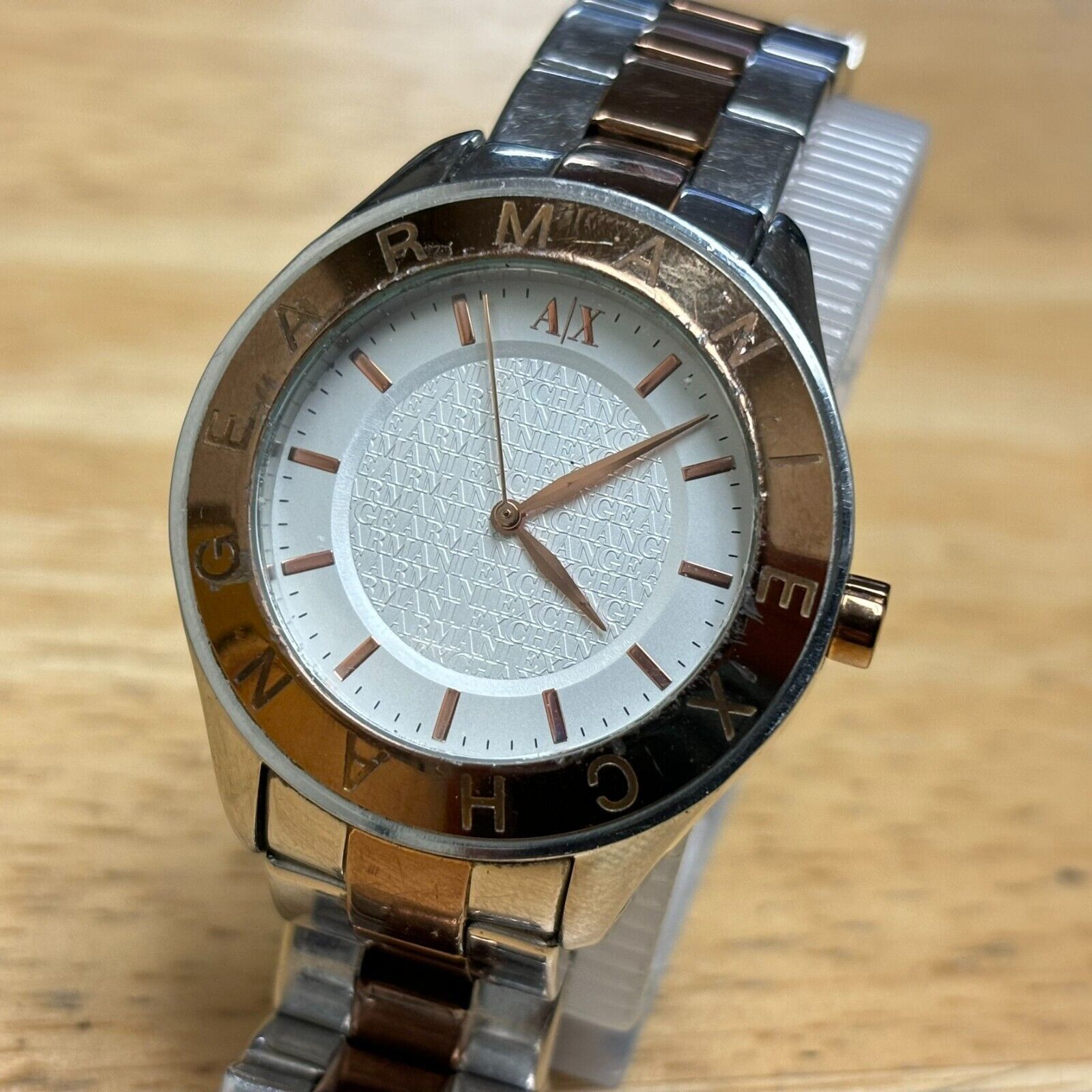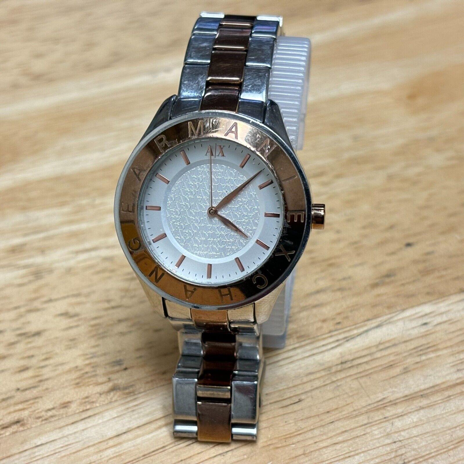 Armani Exchange Quartz Watch Women Dual Tone Steel Analog New Battery 5.75"