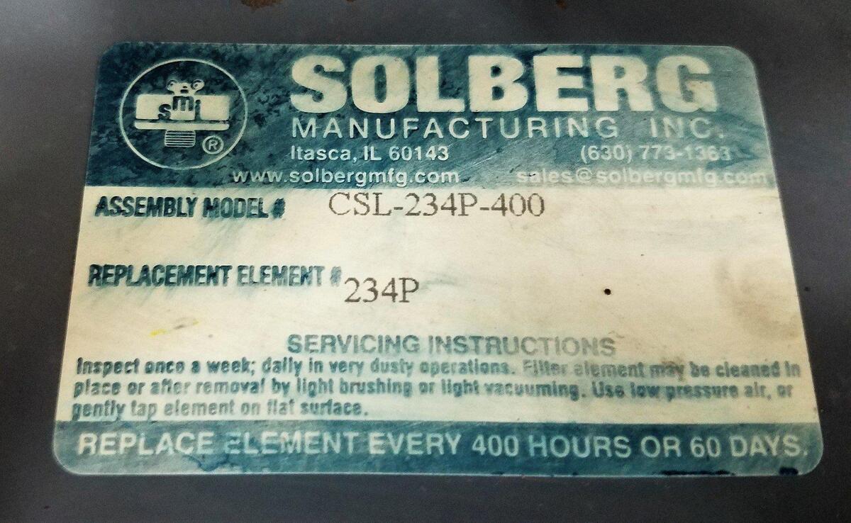 SOLBERG CSL-234P-400 FILTER HOUSING WITH 234P FILTER ELEMENT