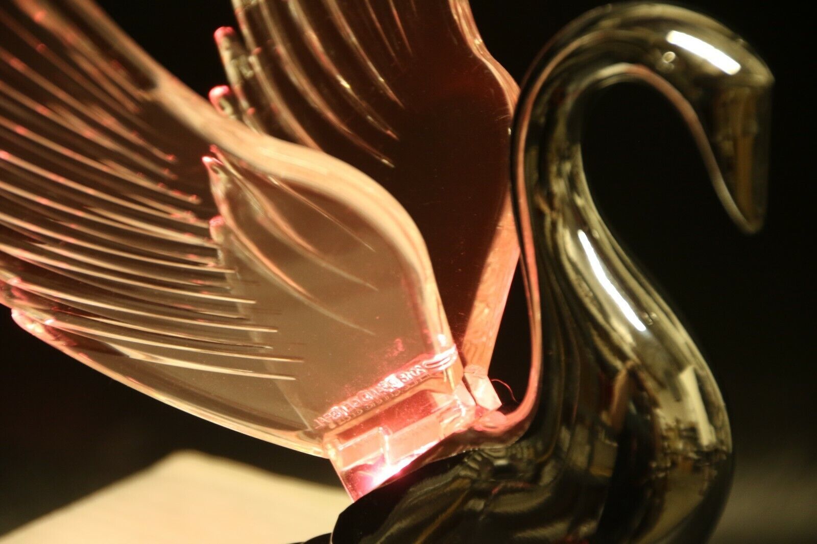 Flying Swan 40's 50's Hood Ornament Custom Hot Rod Truck Clear Wings Pink Light