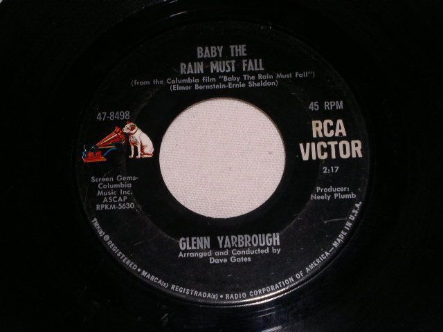 GLENN YARBROUGH BABY THE RAIN MUST FALL 45 RPM RECORD VINTAGE