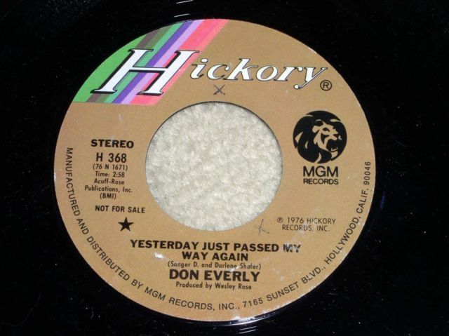 DON EVERLY YESTERDAY JUST PASSED MY WAY AGAIN PROMO 45 RPM RECORD VINTAGE 1976