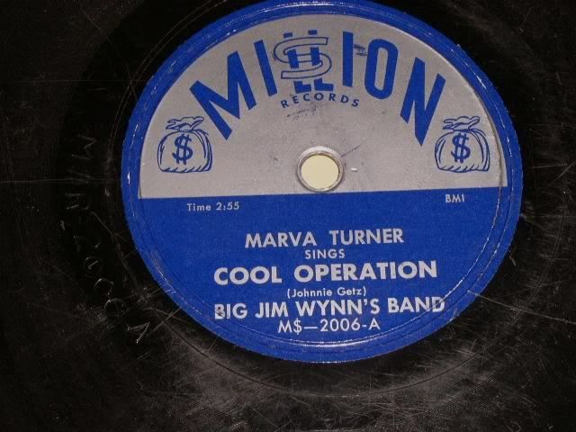 This is a 78 rpm recording by Marva Turner/Big Jim Wynn's Band. Title: "Cool Operation"/"Makes No Difference". Record label Million 2006.