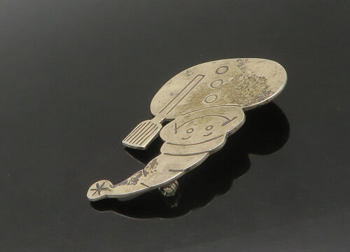MEXICO 925 Silver - Vintage Happy Snowman Winter Motif Brooch Pin - BP8770