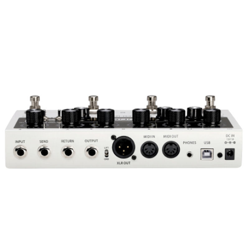 Added to each of the 12 preamp channels is a dual position booster, adjustable pre and post noise gates, a fully programmable effects loop with different modes, full channel switching control, MIDI IN and OUT, dedicated headphone connection, multiple outputs with optional cab simulation and IR loading capabilities.