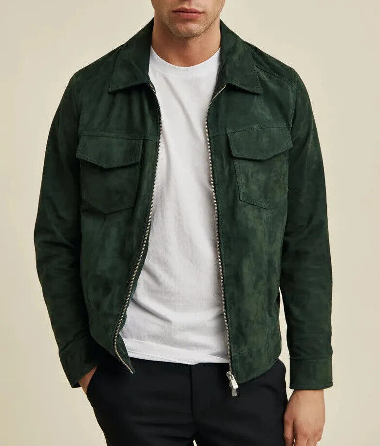 Stylish Suede Party Handmade Genuine Lambskin Designer Leather Green Men Jacket