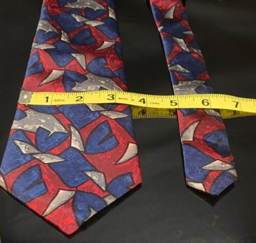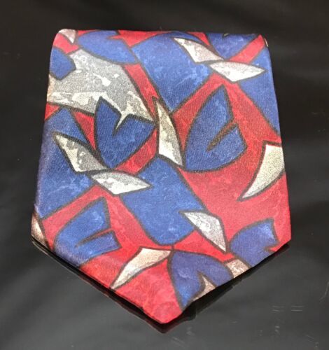 Domani Uomo Silk Geometric Neck Tie Navy Royal Blue Red Silver All Silk Classic
