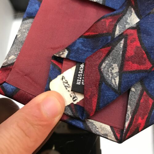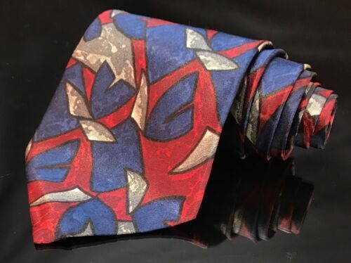 You Are Buying A Domani Uomo Silk Geometric Neck Tie Navy Royal Blue Red Silver All Silk Classic