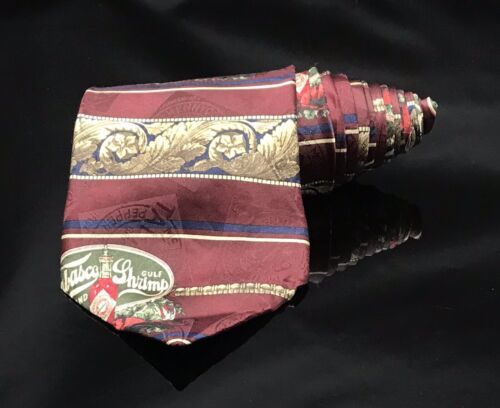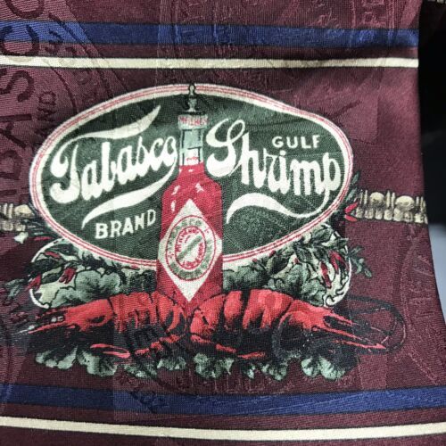 TABASCO Hot Red Gulf Shrimp Prawn Crustacean Feast Seafood Tie 100% Silk
