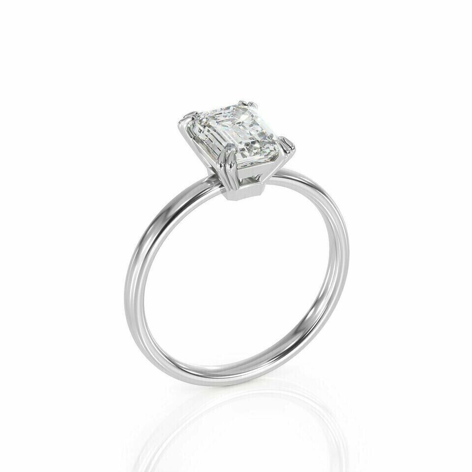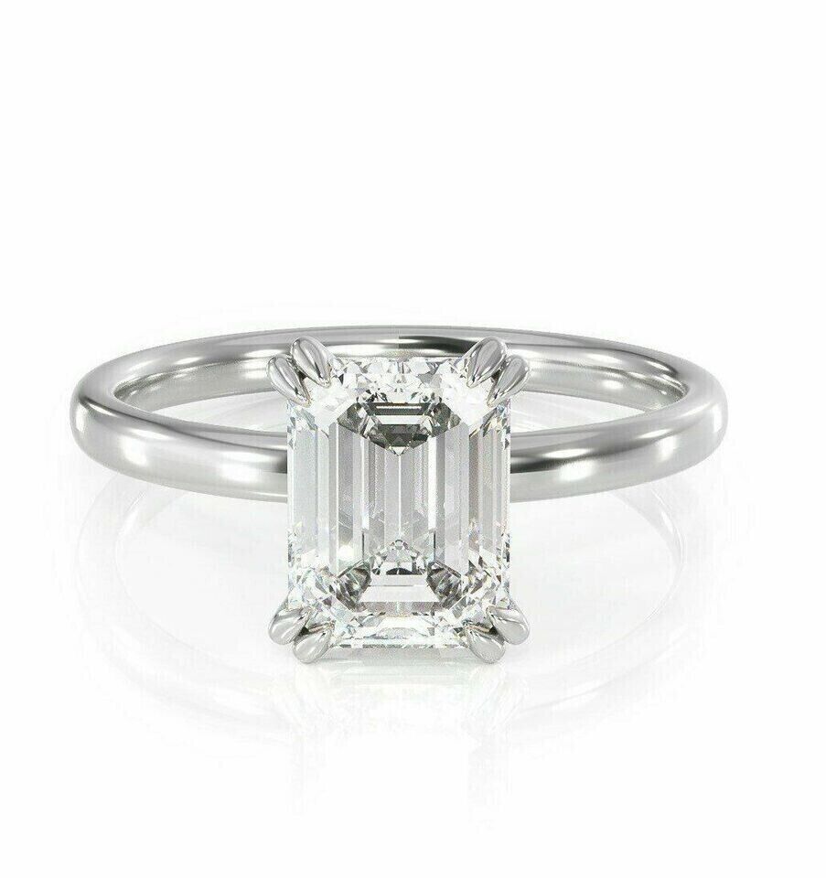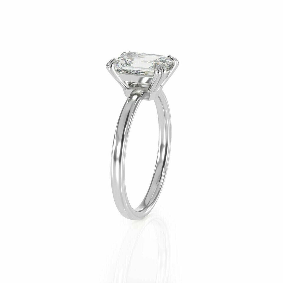 2.50Ct Emerald-Cut Lab Created Solitaire Engagement Ring 14k White Gold Plated