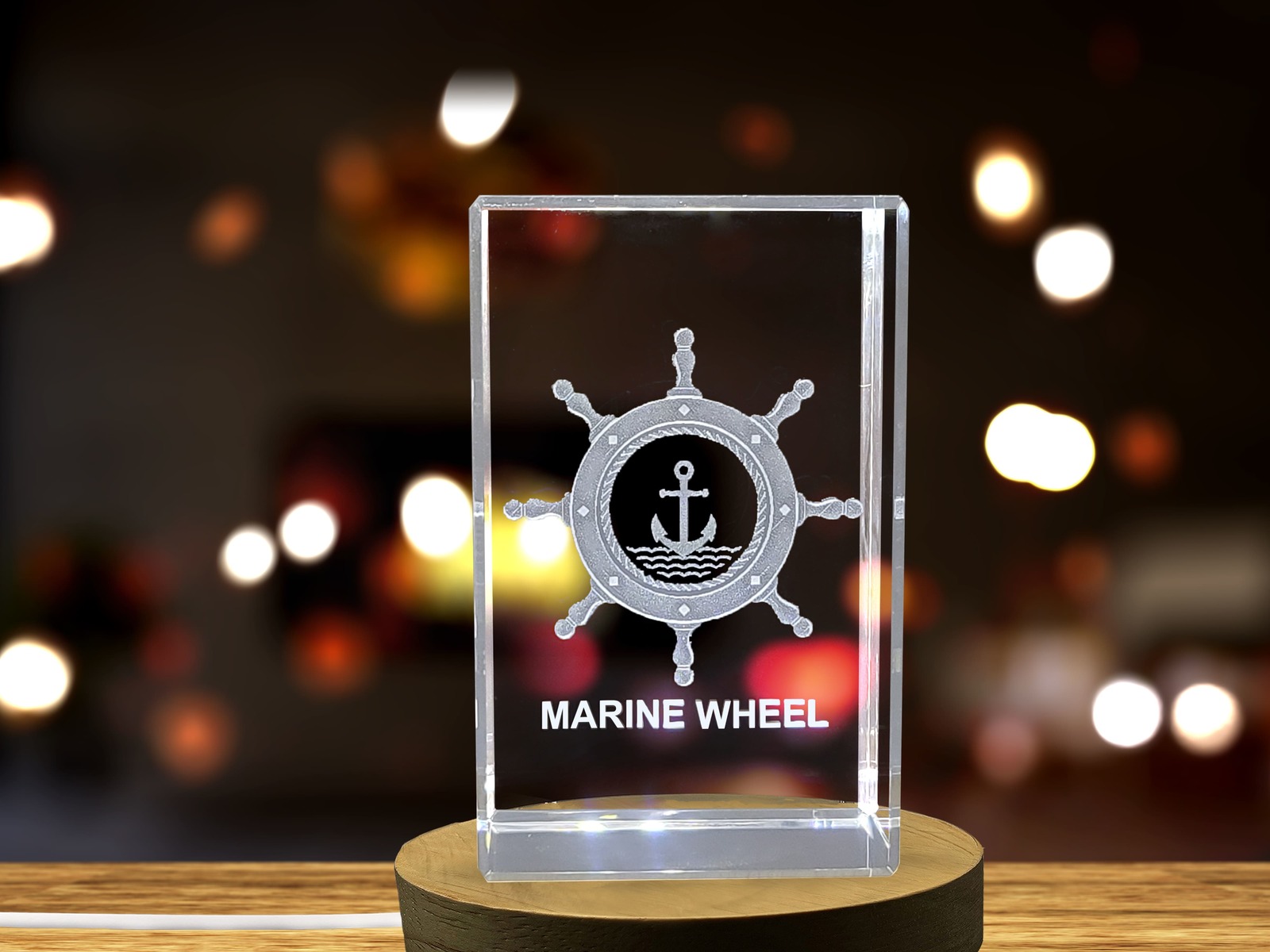 LED Base included | A Wheel of Voyages | Marine Wheel 3D Engraved Crystal