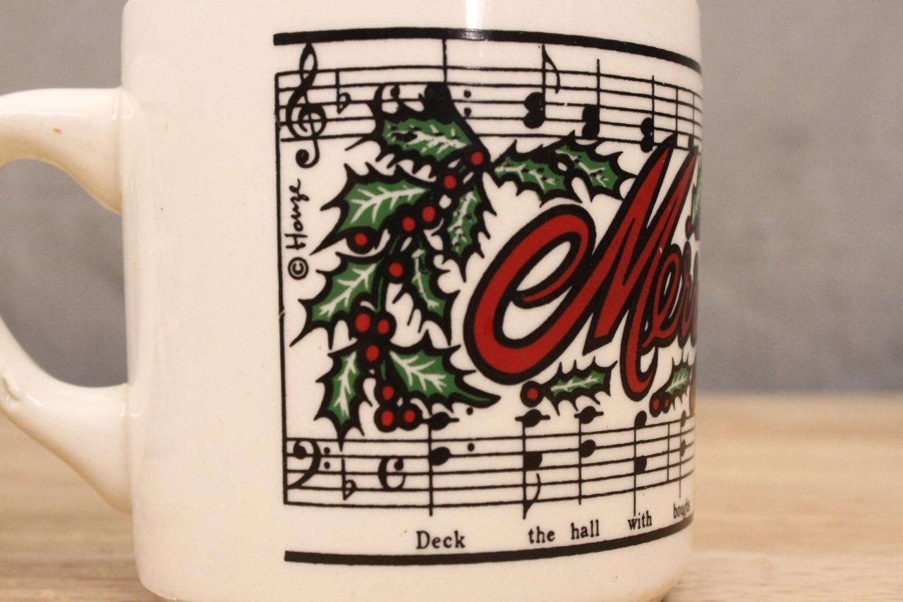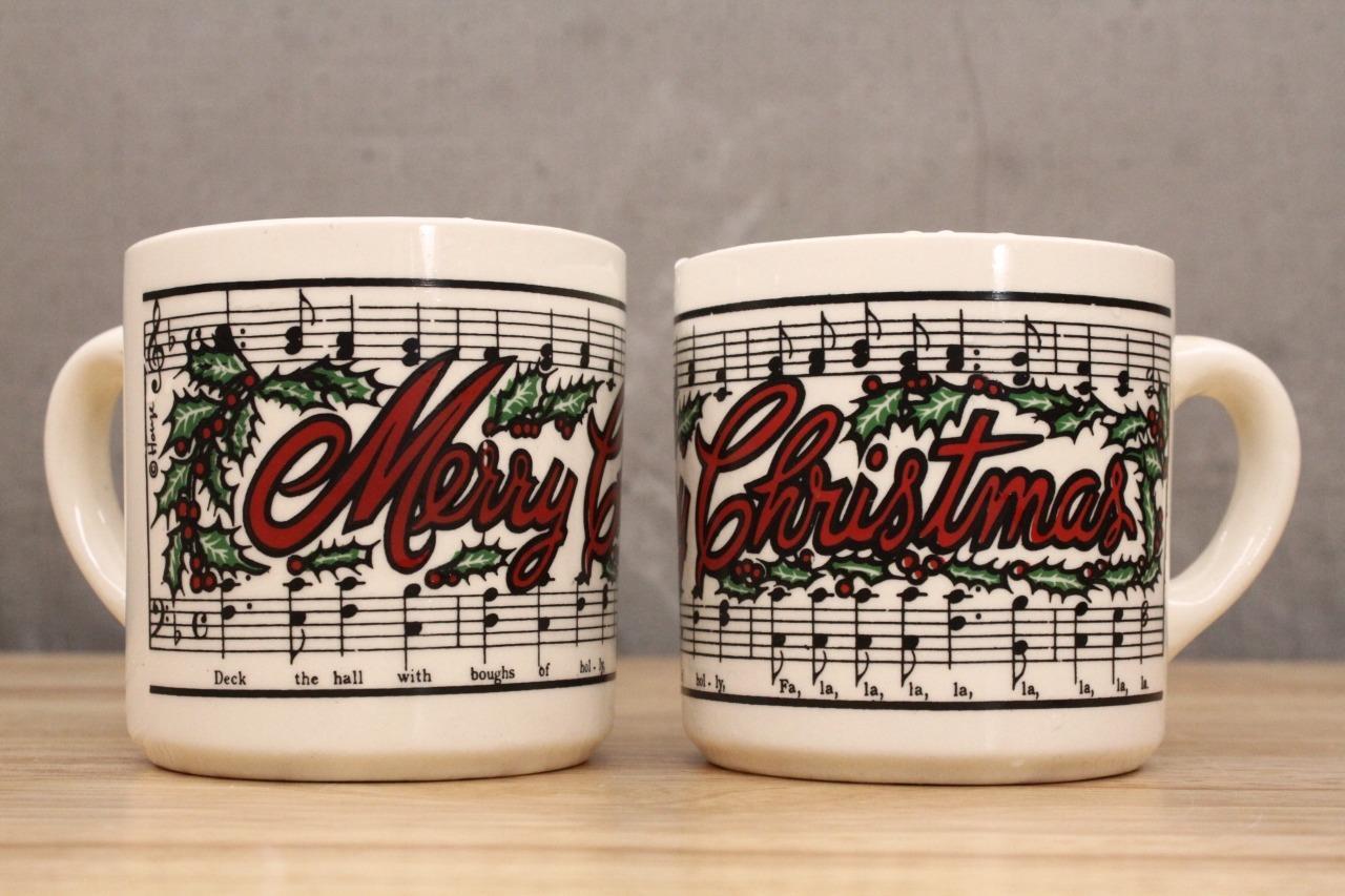Vintage USA Stoneware MERRY CHRISTMAS Deck The Halls Sheet Music Coffee Mugs