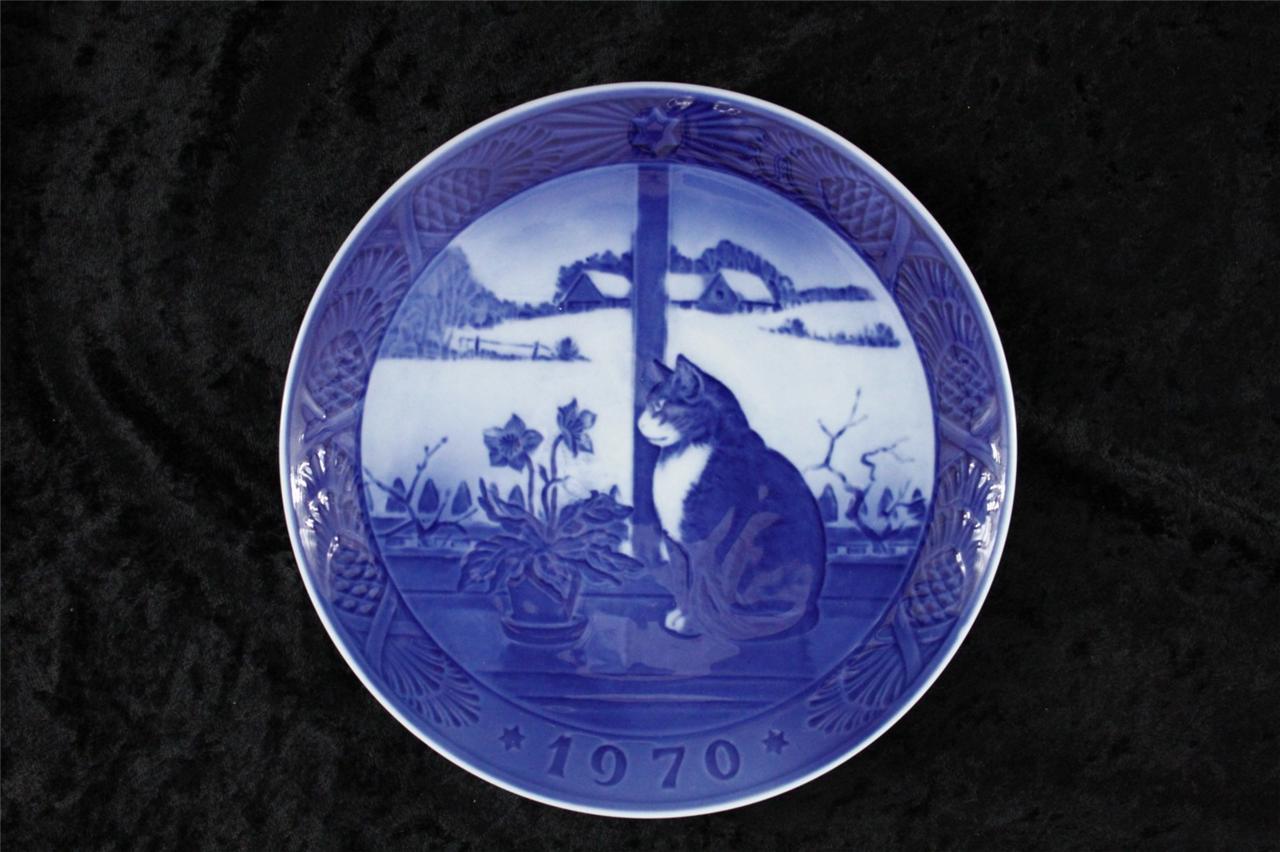 Date: Vintage Christmas China Plate Royal Copenhagen Denmark 1970 Rose Cat