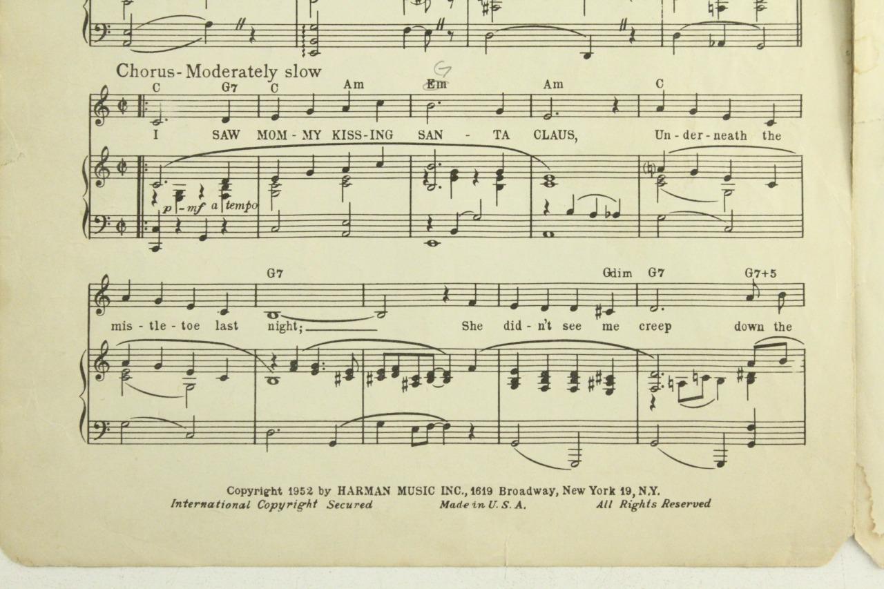 Christmas Sheet Music I Saw Mommy Kissing Santa Claus Harman Music Jimmy Boyd