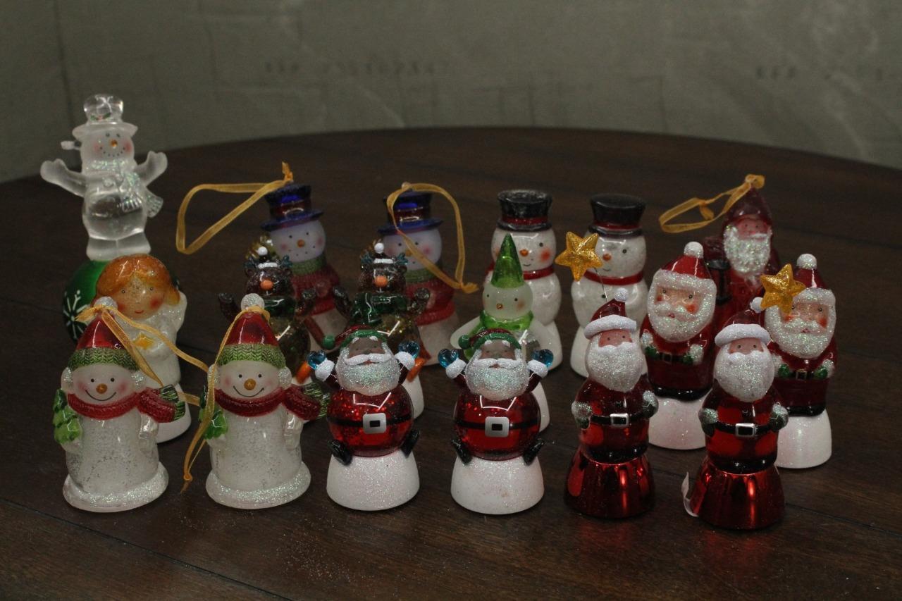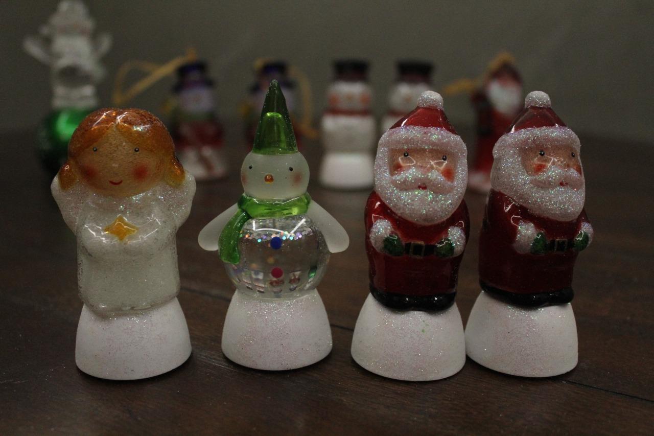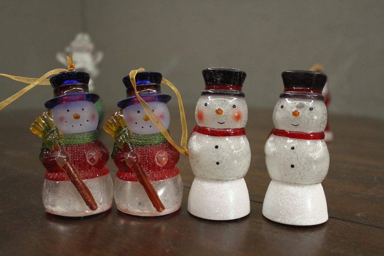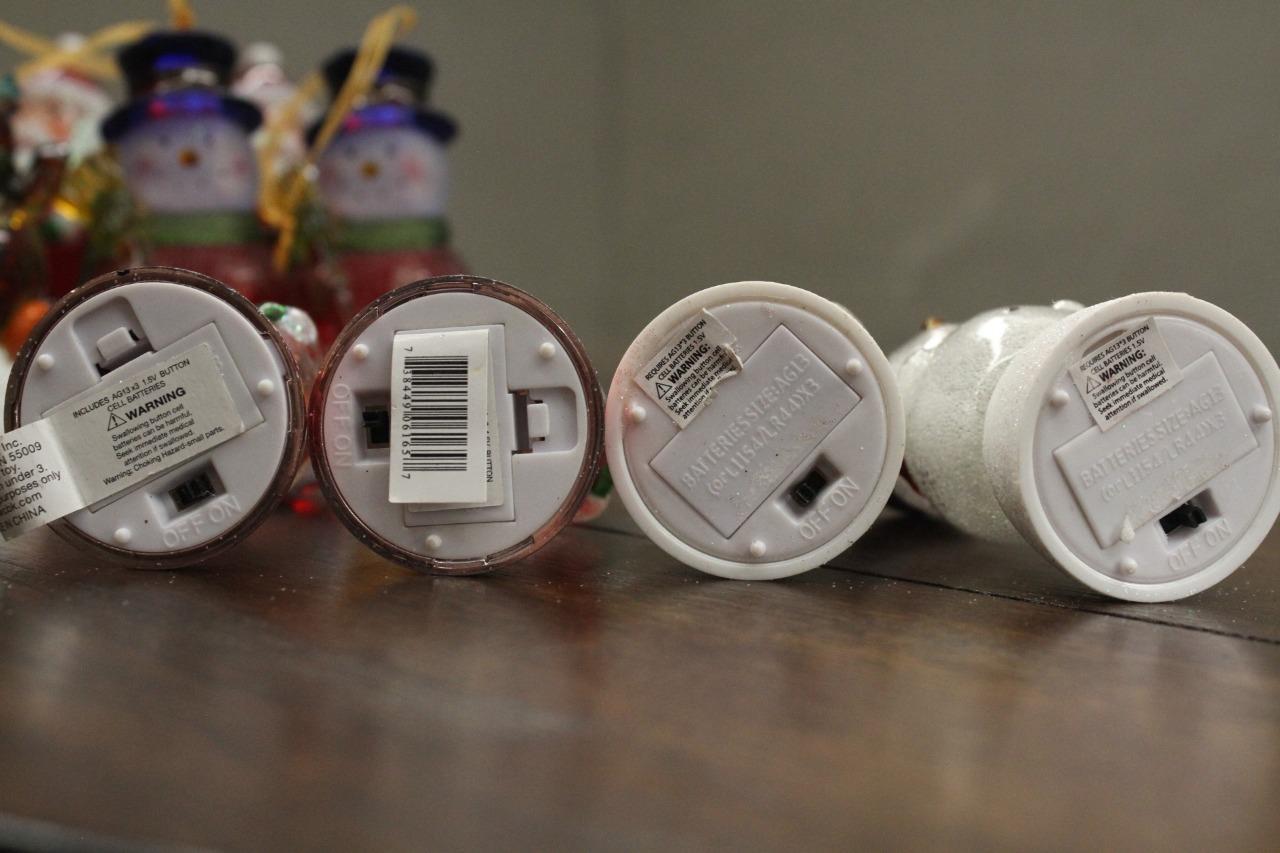 Midwest of Cannon Falls Lot Christmas Light Up Figurines Angel Santa Snowman - most 3-3.5" tall. All will need batteries. They take AG13*3 button cell batteries 1.5v. Produced in 2010. Some designed to stand, others to hang on the tree. Some have snow globe bellies. Signed on the base. No smoke or pet odor. No chips or cracks. 17PCS total in this lot. You get the exact items shown in the picture. Plastic construction.