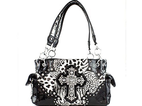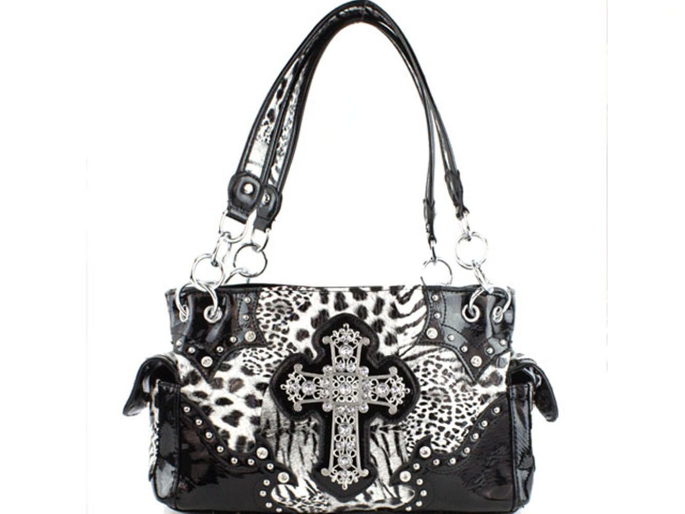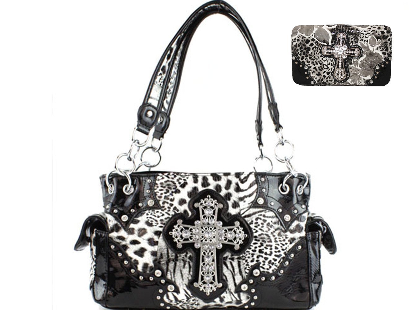 western rhinestone cross leopard concealed carry handbag with matching wallets i