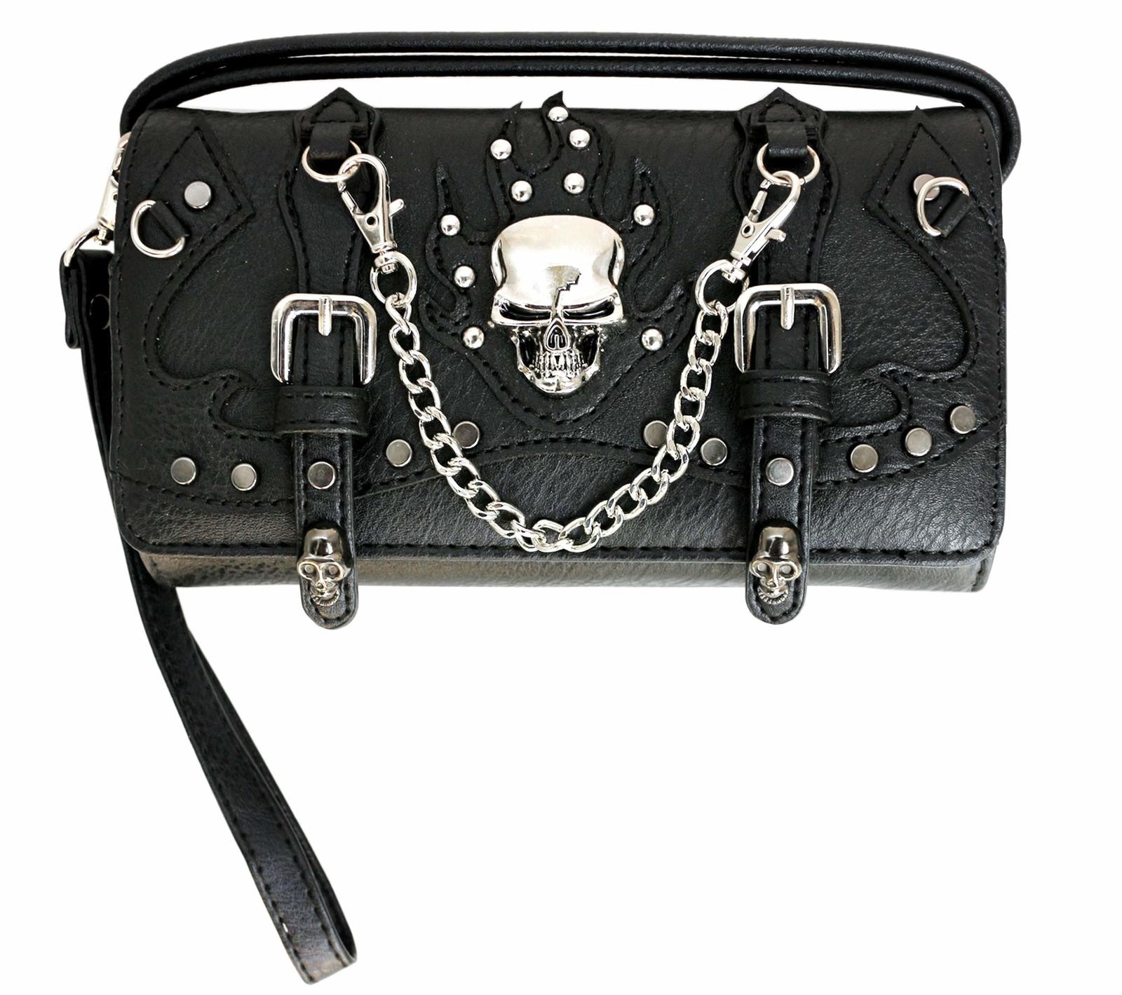 Texas West Women's Skull Rhinestone Chain Concealed Carry Handbag Purse (Wallet