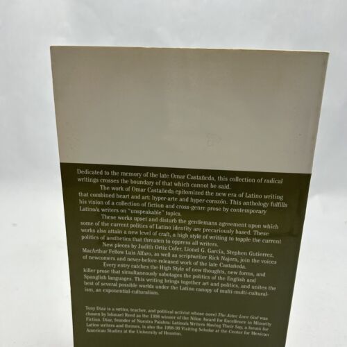 The work of Omar Castaneda epitomized the new era of Latino writing that combined heart and art: hyper-arte and hyper-corazon. This anthology fulfills his vision of a collection of fiction and cross-genre prose by contemporary Latino/a writers on "unspeakable" topics.