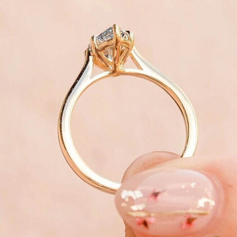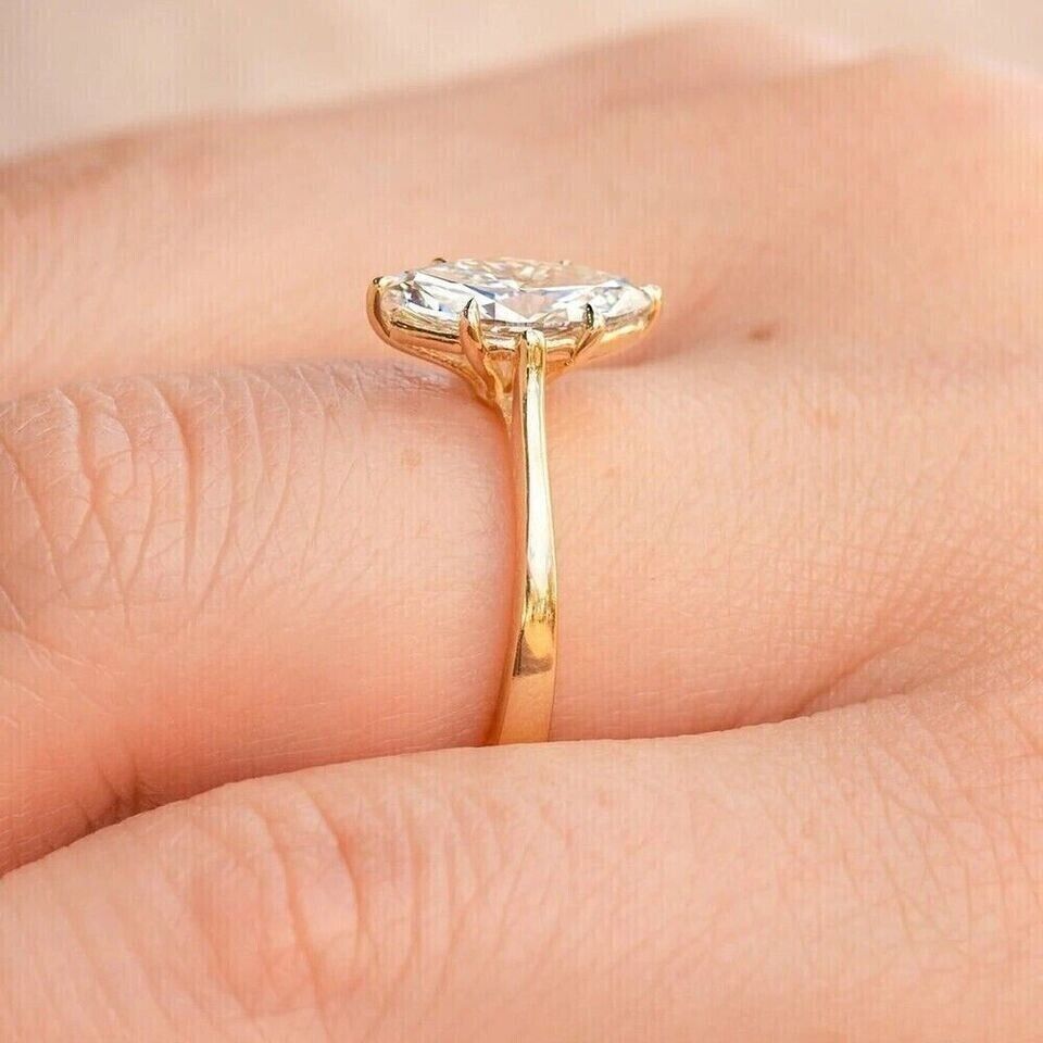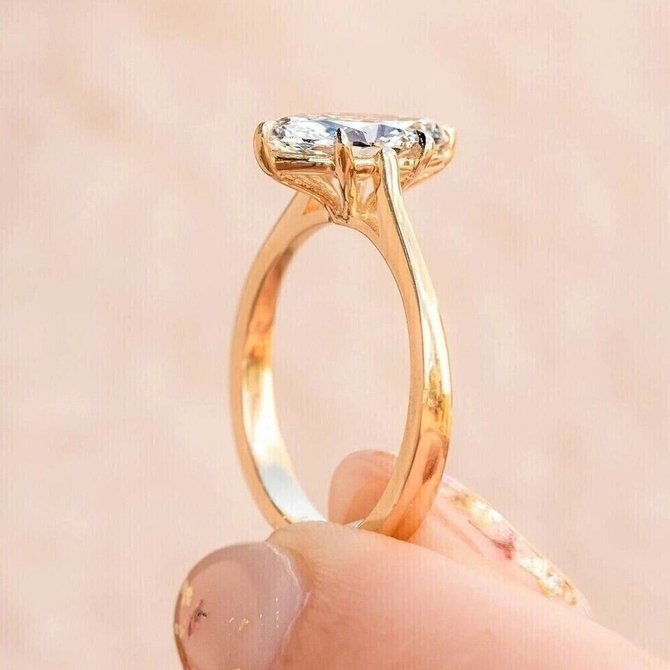 3Ct Marquise Cut Lab-Created Solitaire Engagement Ring 14K Yellow Gold Plated