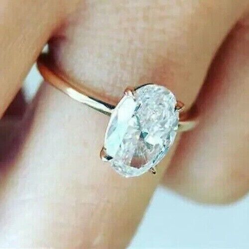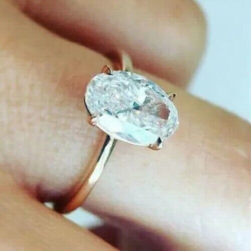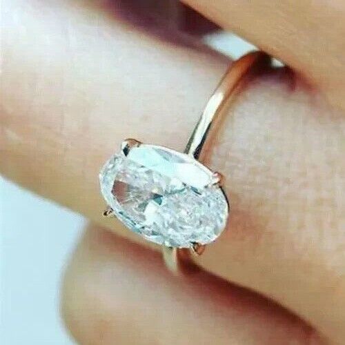 3Ct Oval Cut Lab-Created Solitaire Engagement WeddingRing 14K Yellow Gold Plated