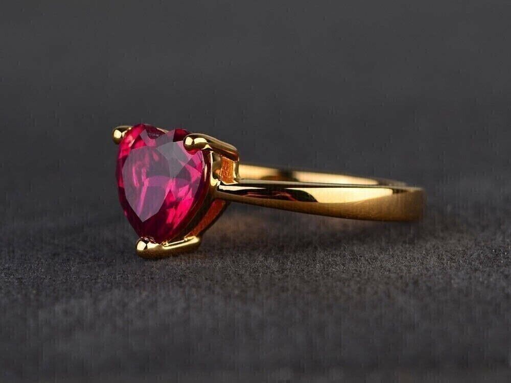 2Ct Heart Cut Garnet Diamond Women's Wedding Ring 14K Yellow Gold Plated