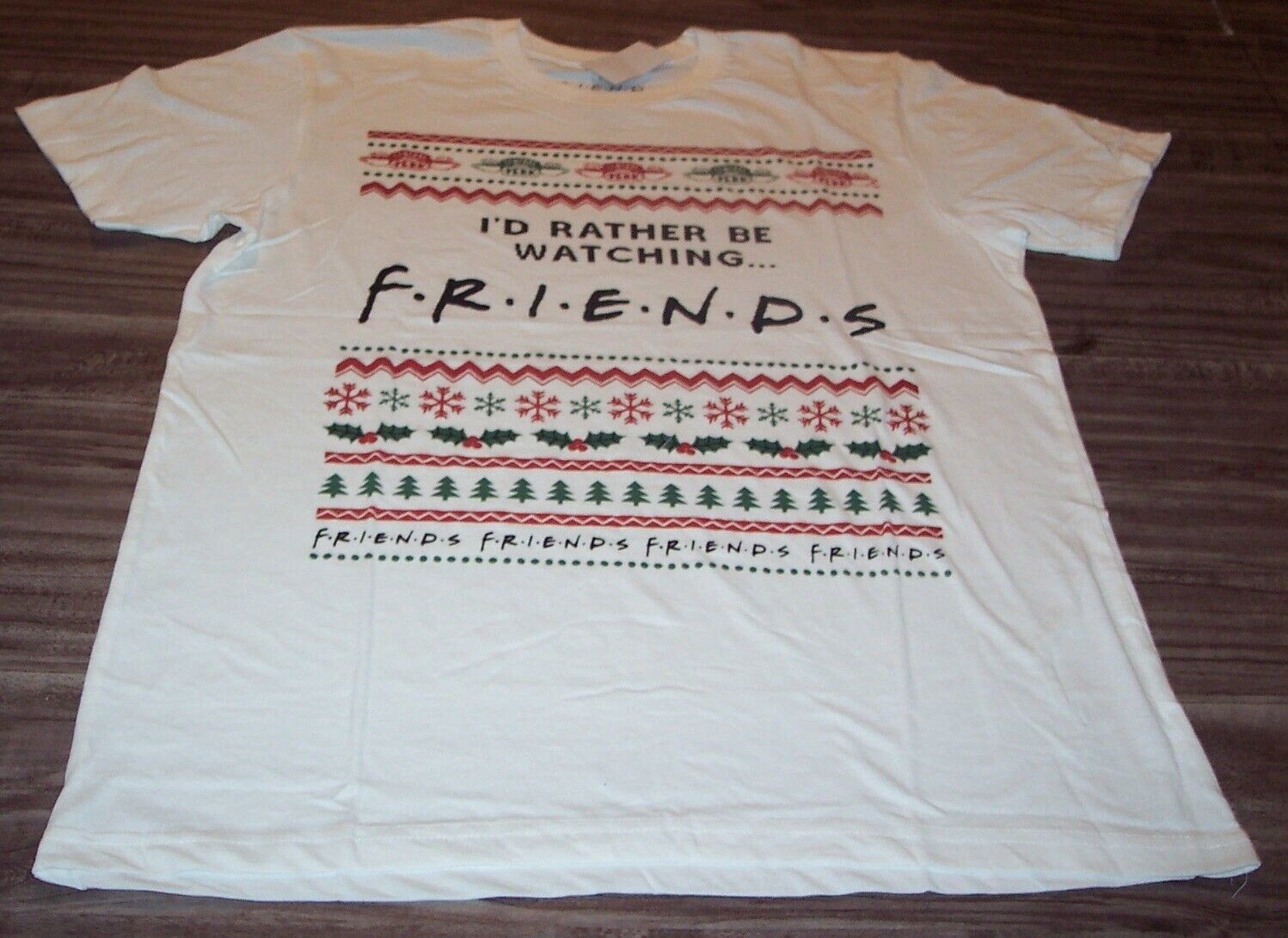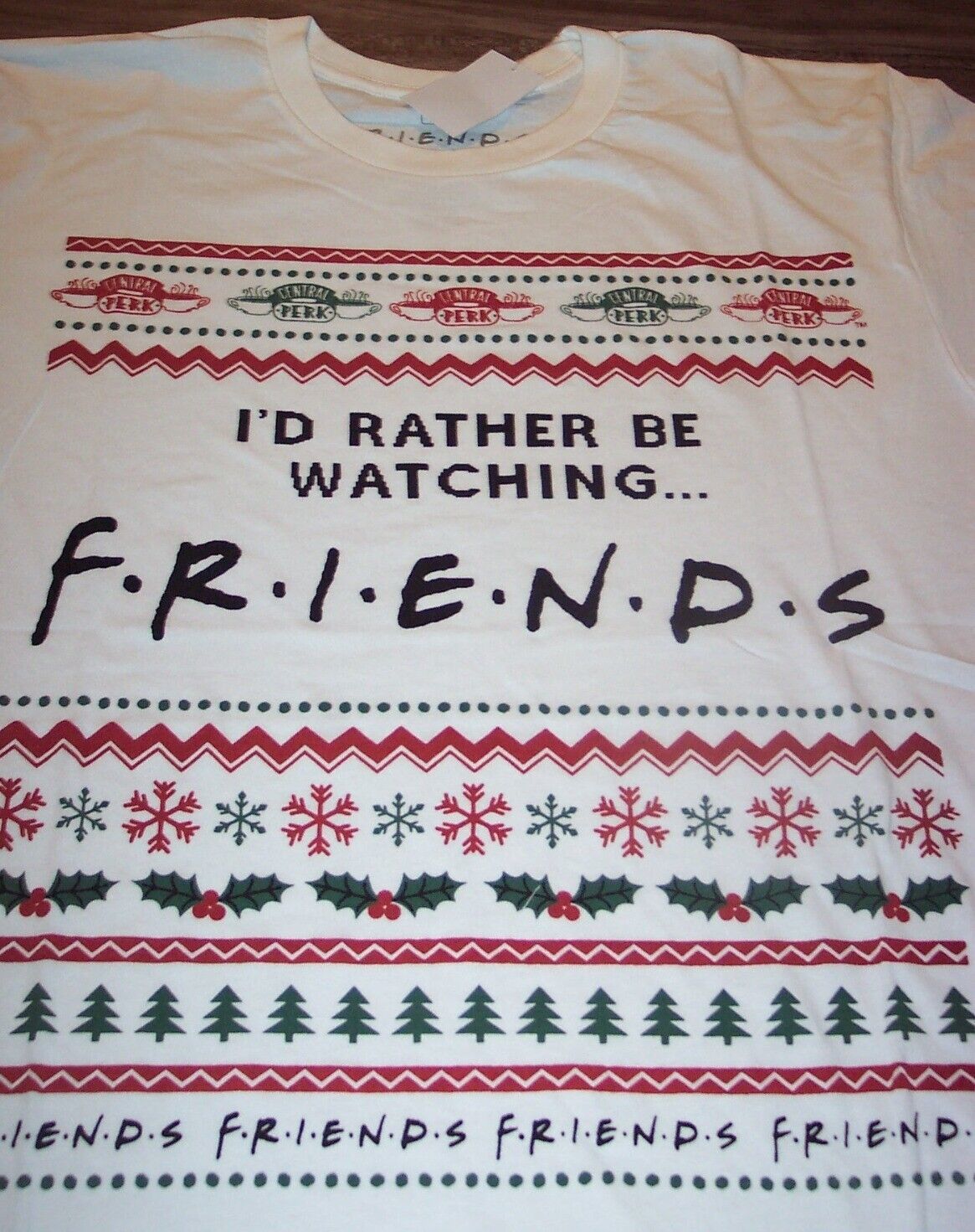 This is a F.R.I.E.N.D.S. Central Perk Coffee CHRISTMAS Tv Show "I Rather Be Watching Friends" T-shirt. It is a size MEDIUM, and it is NEW with the tag. It is 21 inches from armpit to armpit and 28 inches in length. Combine auctions to save on shipping. D3AG