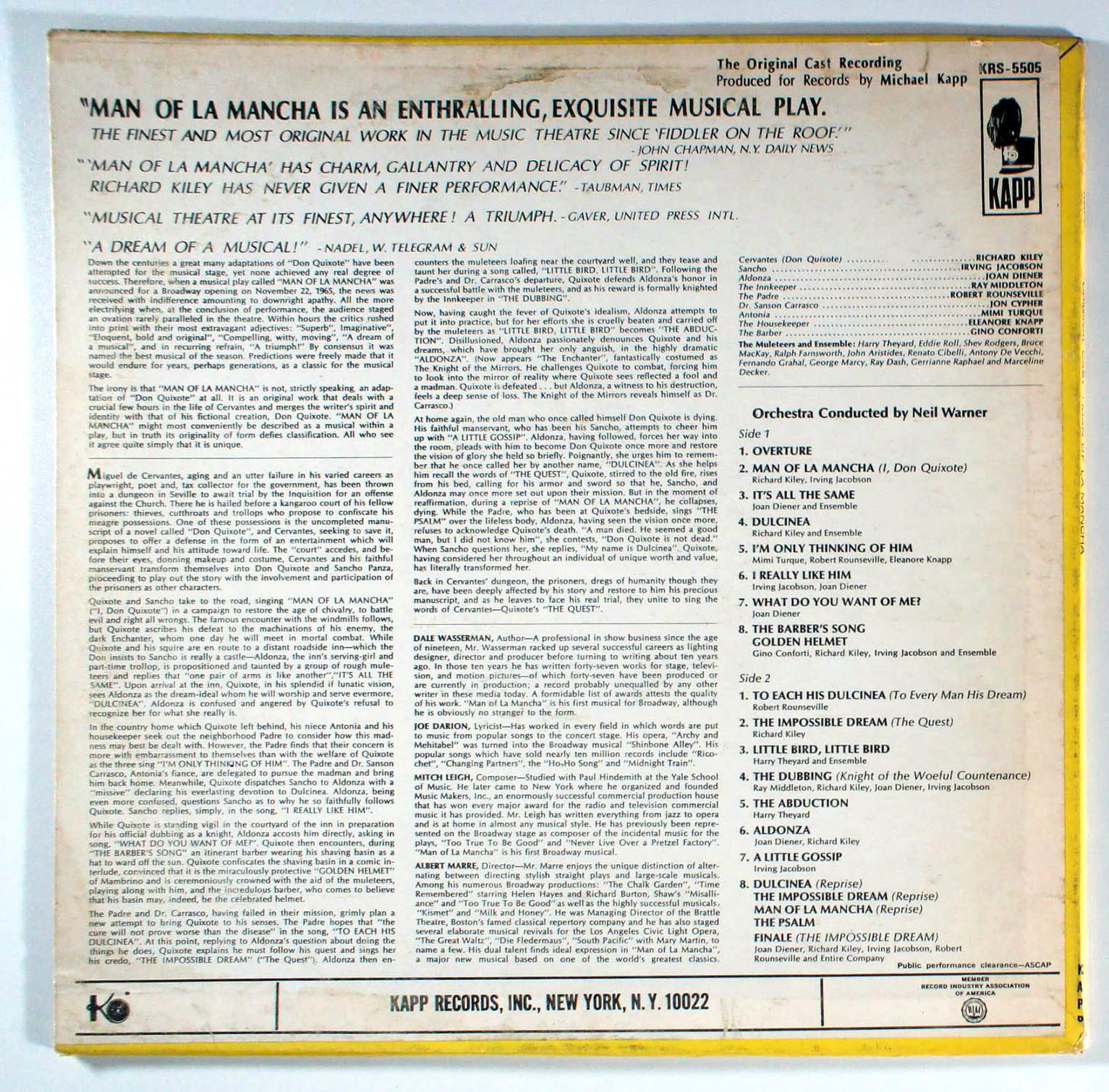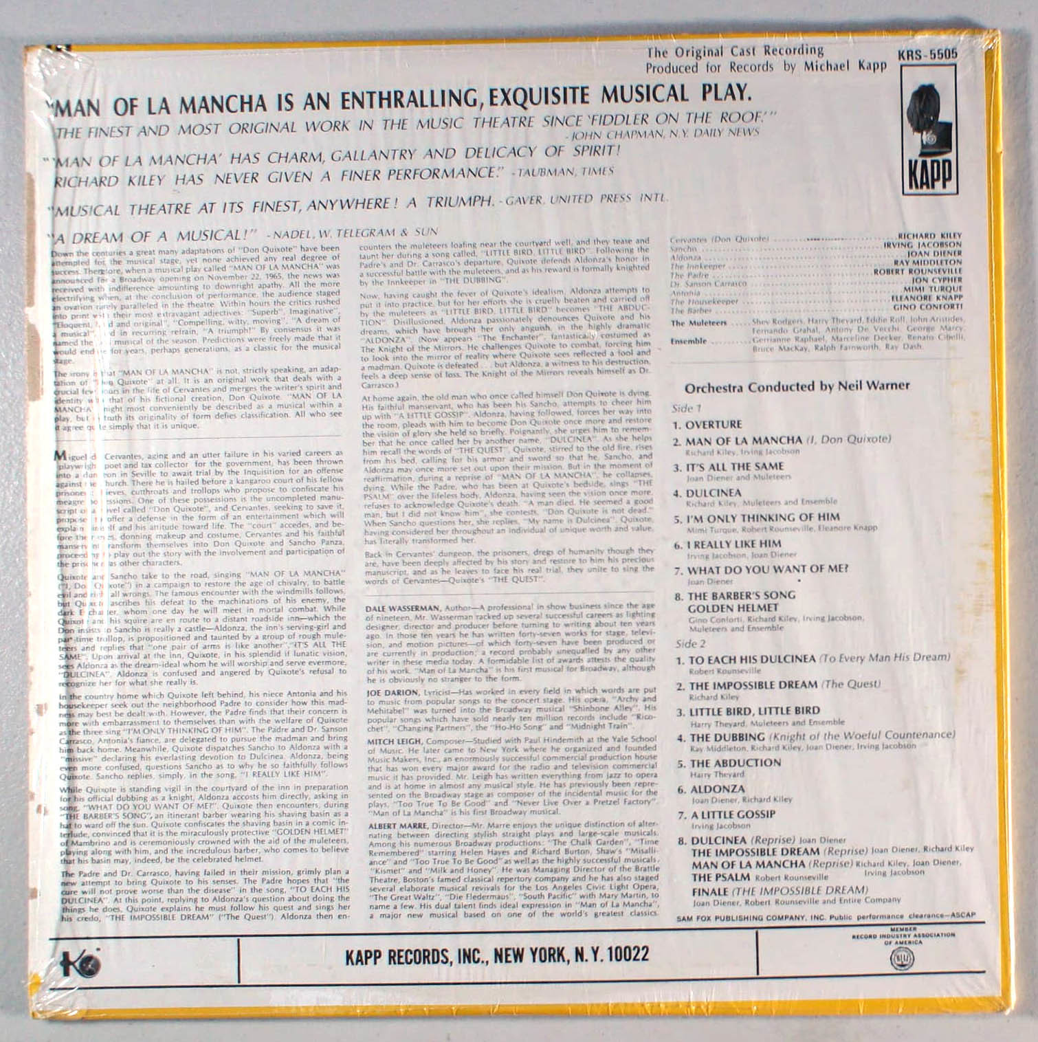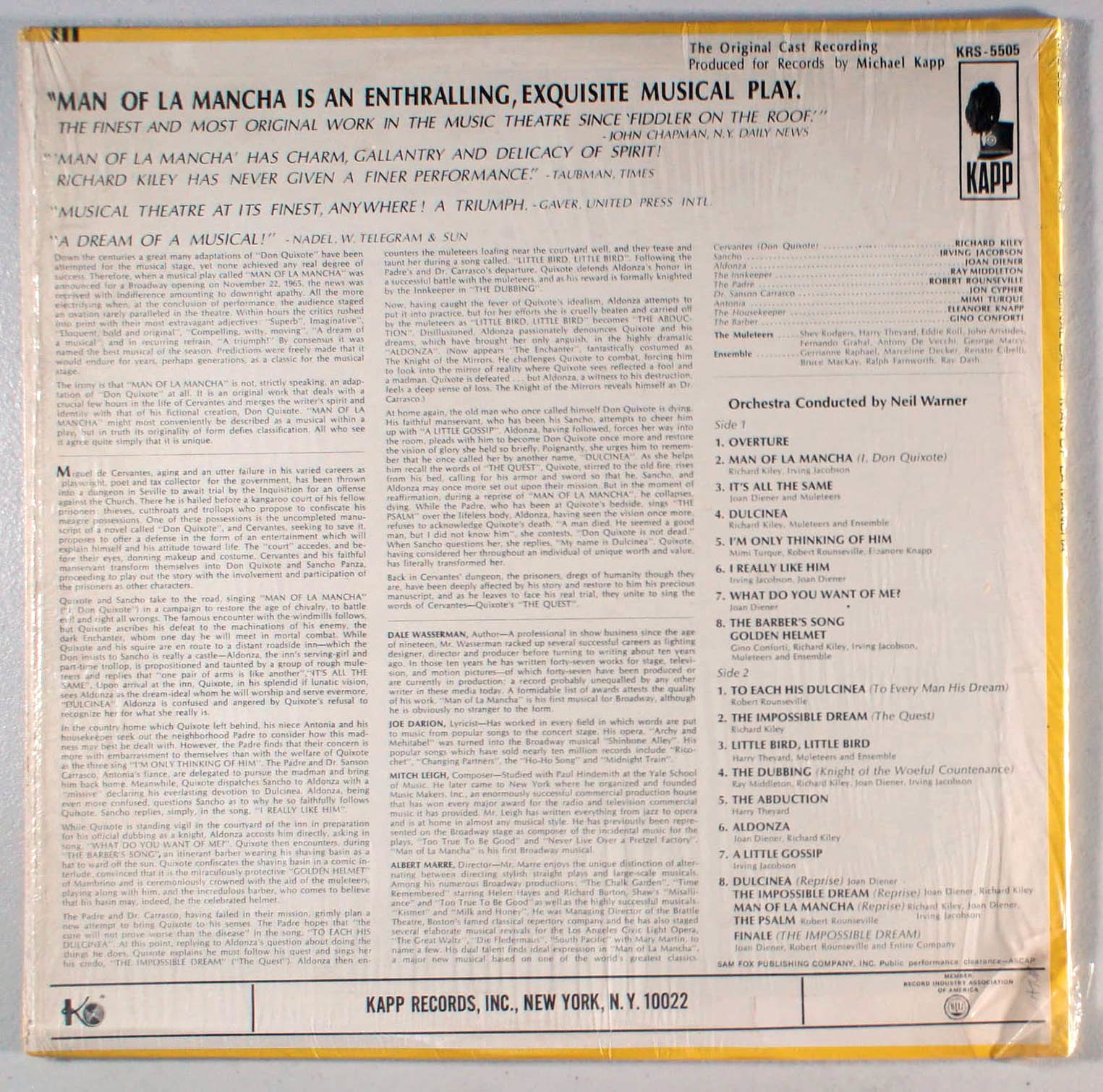 Man of LaMancha (1966) Vinyl LP • The Impossible Dream, Broadway Soundtrack