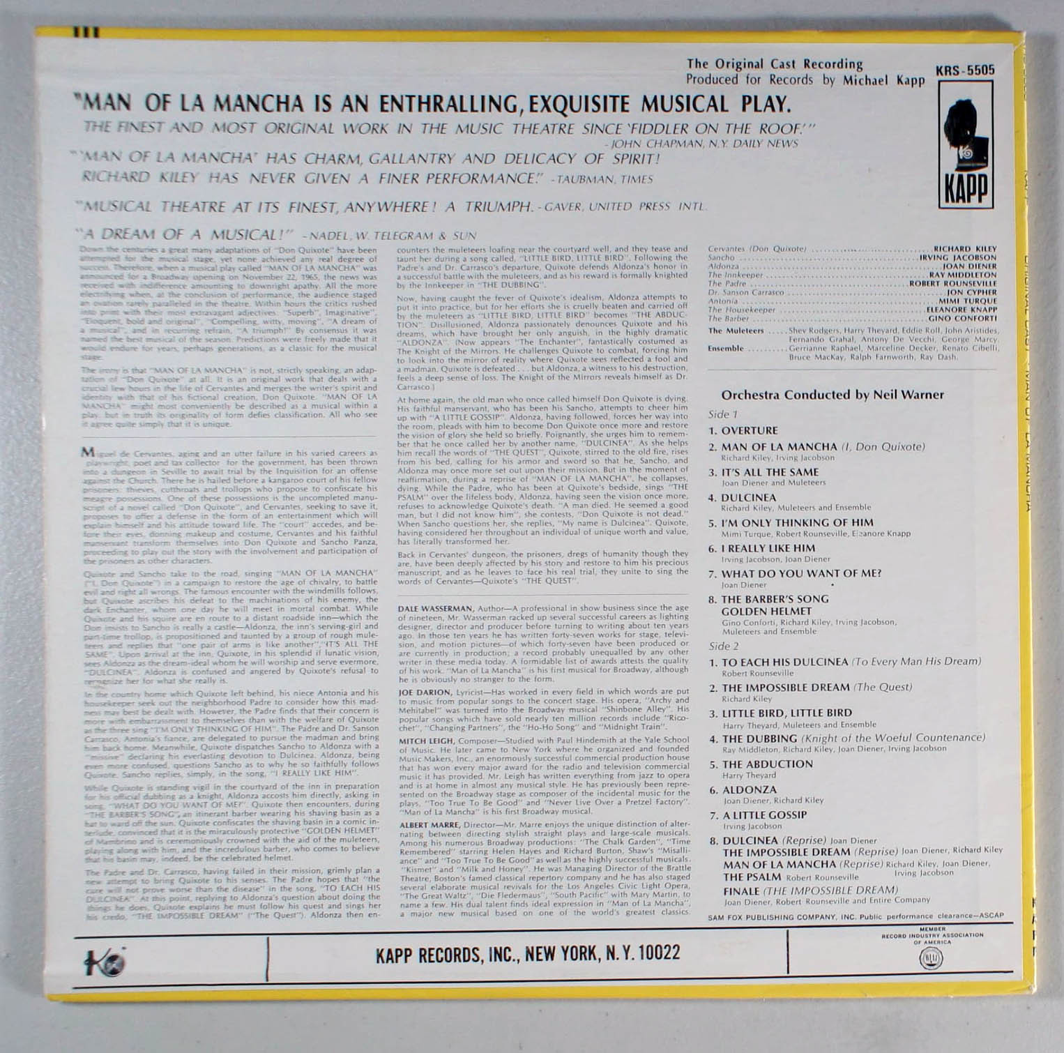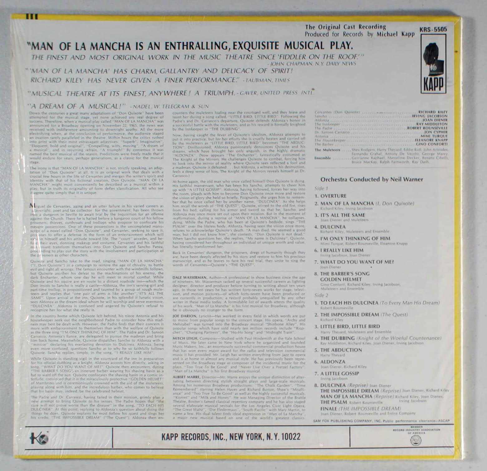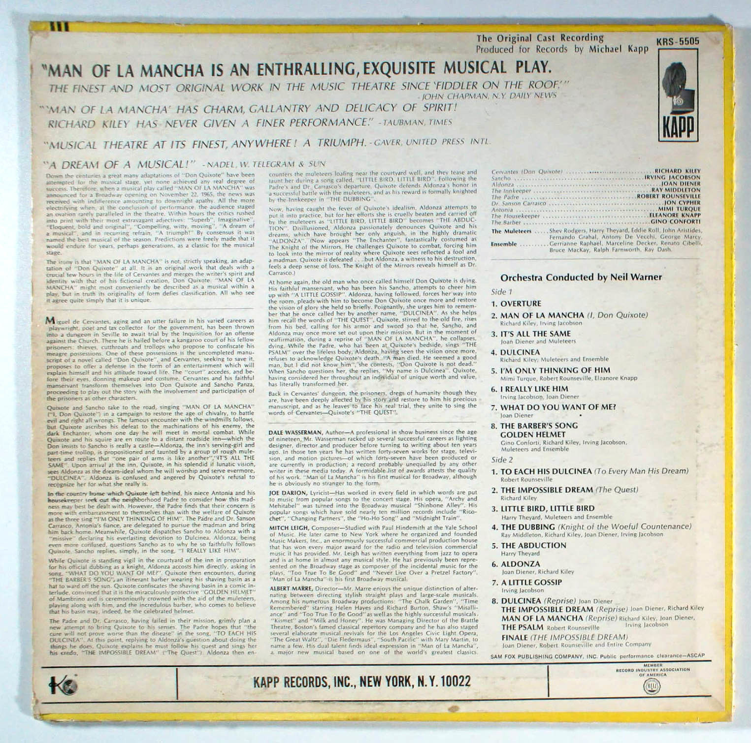 Man of LaMancha (1966) Vinyl LP • The Impossible Dream, Broadway Soundtrack