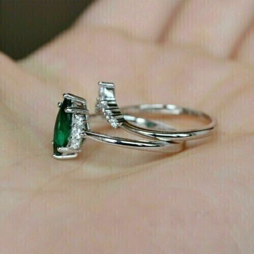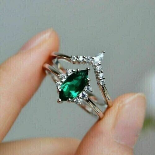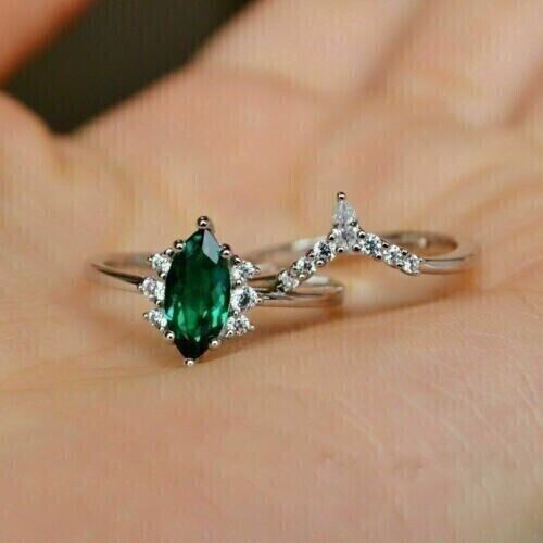 Lab Created Emerald Diamond 2Ct Marquise Bridal Ring Set 14K White Gold Plated