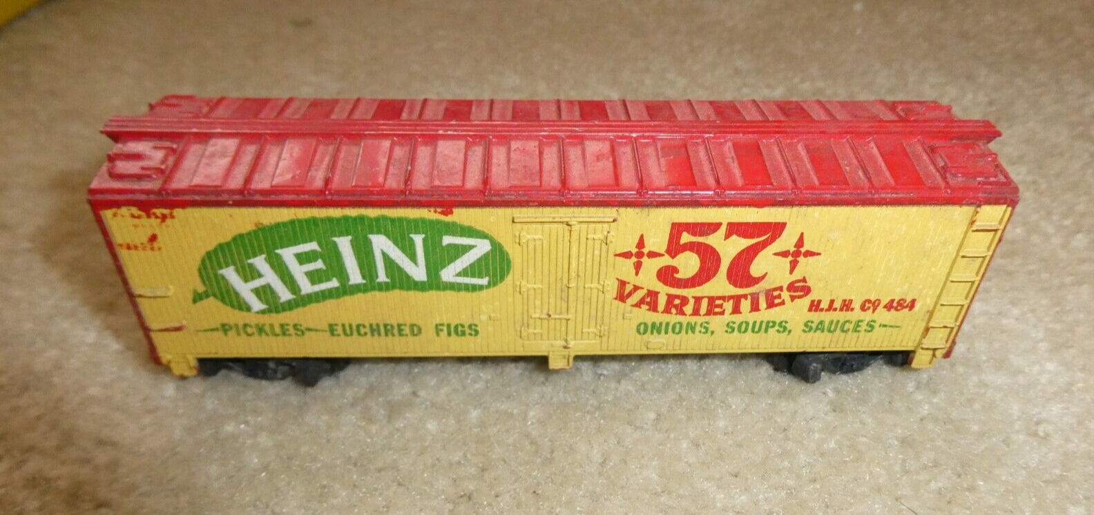 You are bidding on a vintage 1970s to early 1980s era, HO Scale, Tyco, plastic Heinz reefer car in the pictures. 5 3/4 inches long. Nice shape, light wear, missing brake wheel, maybe could use some fine cleaning or use as shown. Zoom in for details.