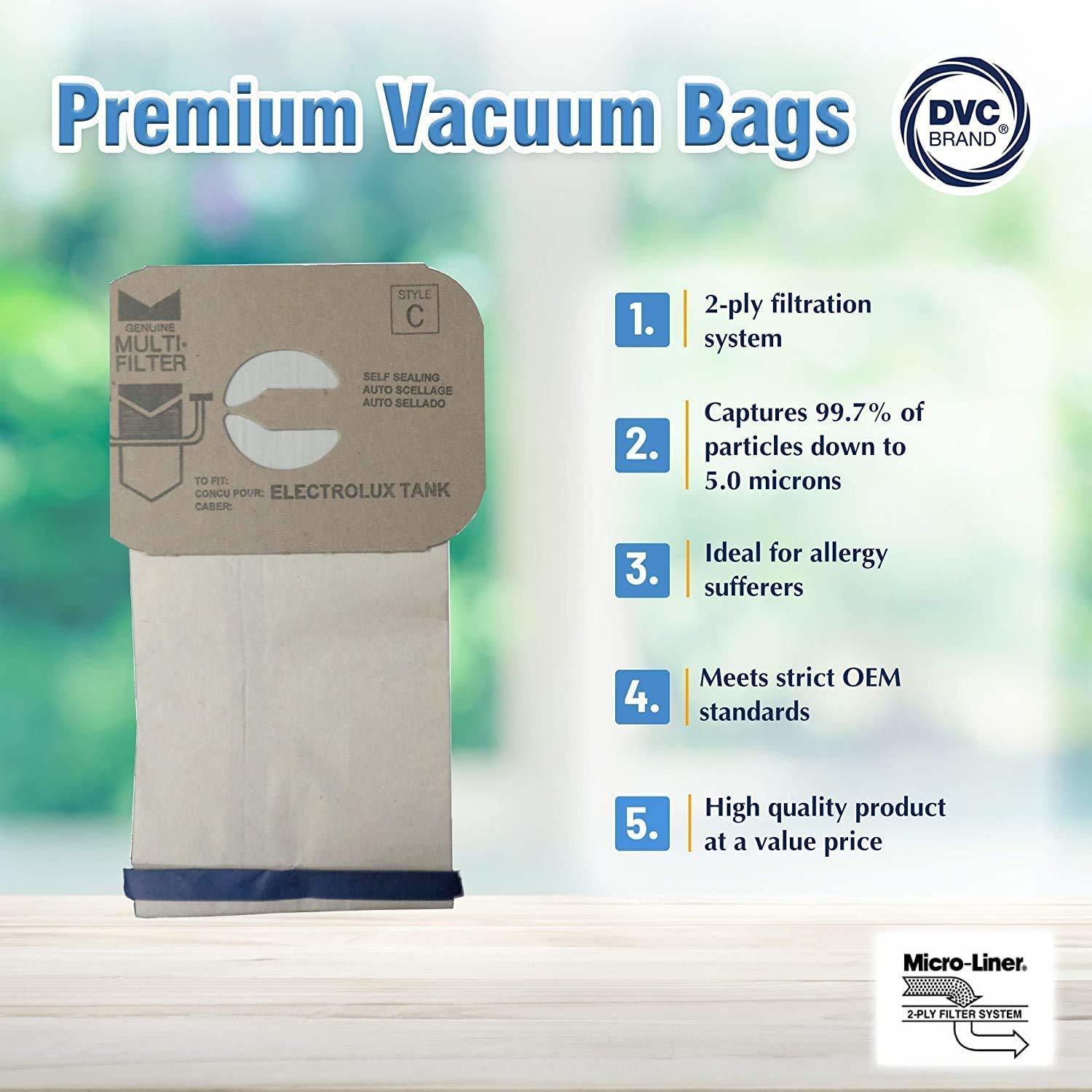 DVC Micro-Lined Paper Replacement Bags for Electrolux Style C Canister Models -