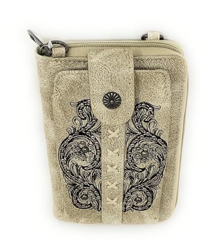 Western Style Small Concho Buckle Embroidery Crossbody Cell Phone Purses Handbags with Coin Pocket in 3 colors. QUALITY WELL MADE: This cross body wallets purse is made of superior quality vegan leather, it's soft, durable and lightweight with quality metal hardware, smooth zipper and good stitching, would be a perfect gift choice for friends or family. STRUCTURE CAPACITY: The crossbody phone wallet bag designed with 1 front pocket, 1 main pocket(with 12 card slots), adjustable and detachable strap. It's roomy enough for your ID, redit cards, driver licence, lipstick, checkbook, pen. Pretty convenient for events, shopping and traveling. DIMENSIONS: Main pocket 7.5"(H) x 5.5"(L) x 0.8"(W), Phone pocket 3.8"(W) x 6.7"(L), Strap Drop 26". The phone pocket can fit most smartphones below 7.5", such as iPhone 14 Pro Max, 14 Pro, 13, 12 Pro, 12, 11 Pro, xs Max, Samsung Note 20 Ultra, Note 20, Galaxy S20 Ultra, s20, s10+, s10, Note10, s9, s8,etc. Durably Well Made.
