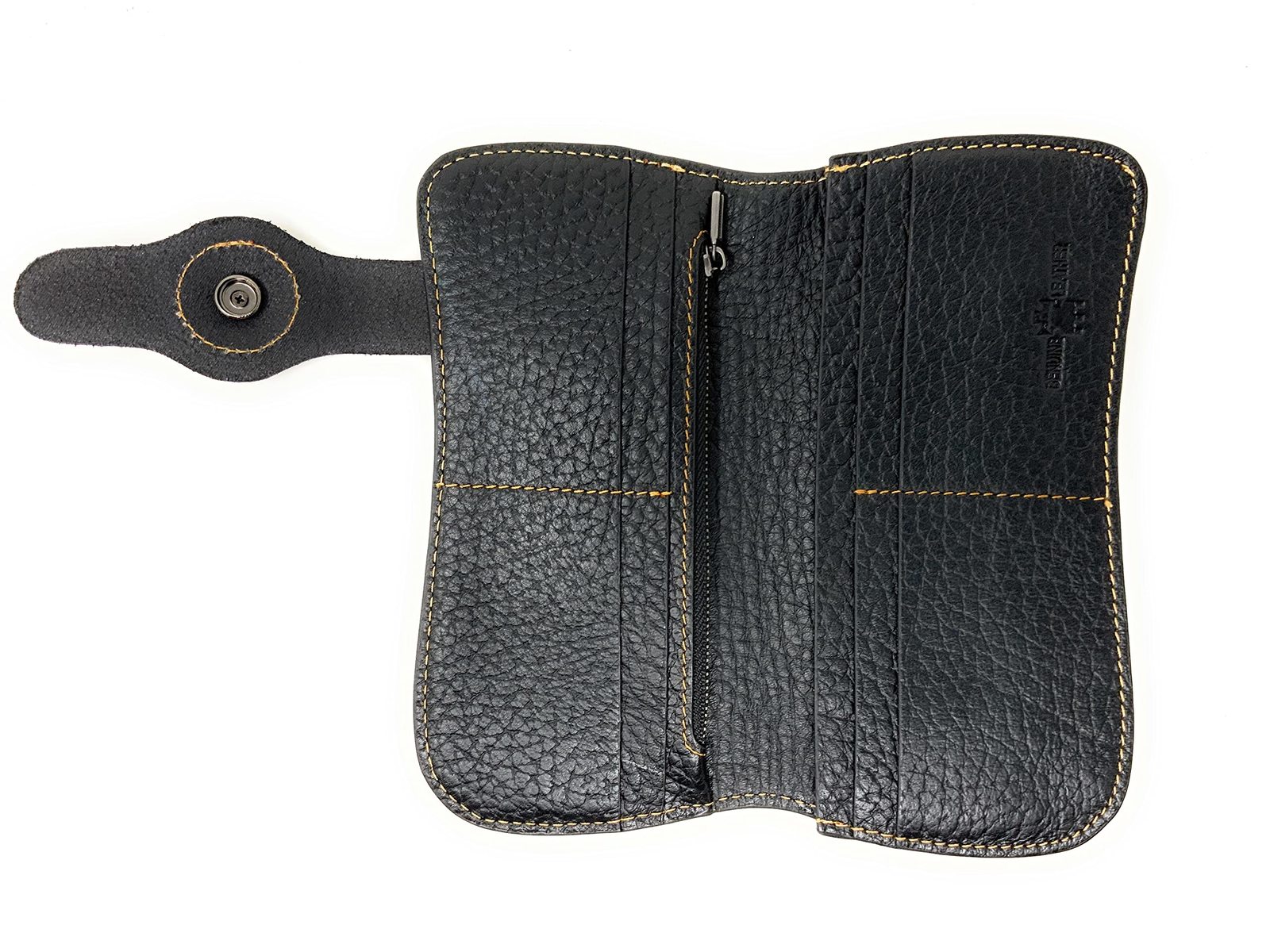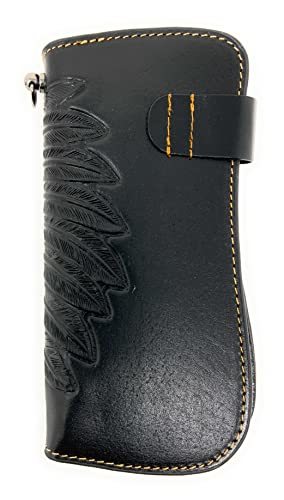 Product description: Native Indian Concho and Print Indian Head Genuine Leather Women's Trifold Wallet/Cellphone Case with Exrta Wrist in 3 colors. Size 8" x 4" x 2". Cellphone pockets included with extra strap. 4 credit card slots, I.D slot, checkbook holder. Cellphone holder. Multiway functions. Can be used as wallet or cellphone case up to 7-7.5" x 4" screen. Durable made and high quality. Fast handling with shipping.