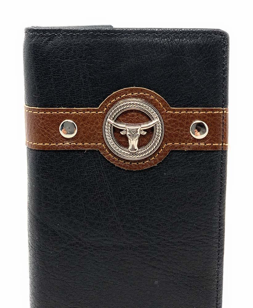 Texas Western Men's RFID Genuine Leather Longhorn Bifold Long Wallet in 3 Colors