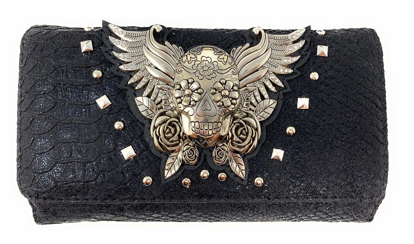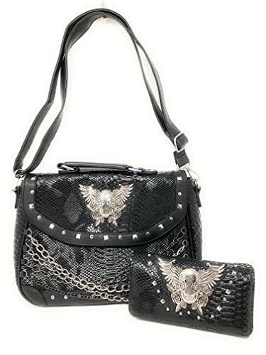 Texas West Women's Skull Chain Concealed Carry Handbag Purse Shoulder Bag/Crossb