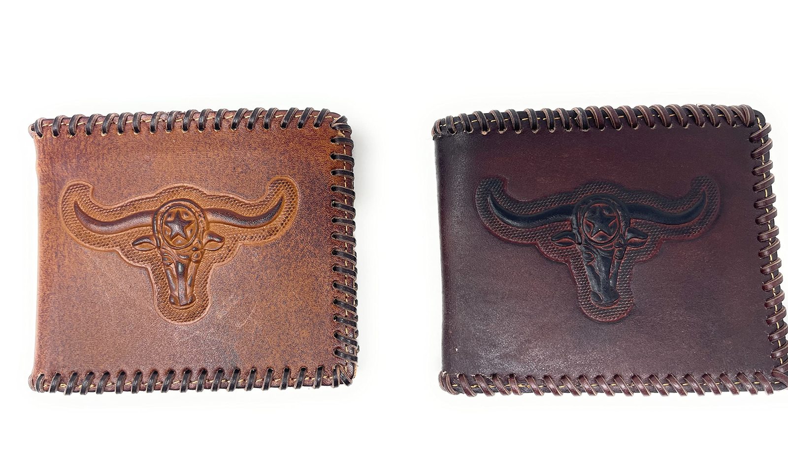 Western Men's Leather Longhorn Print Short Wallet in 2 colors |