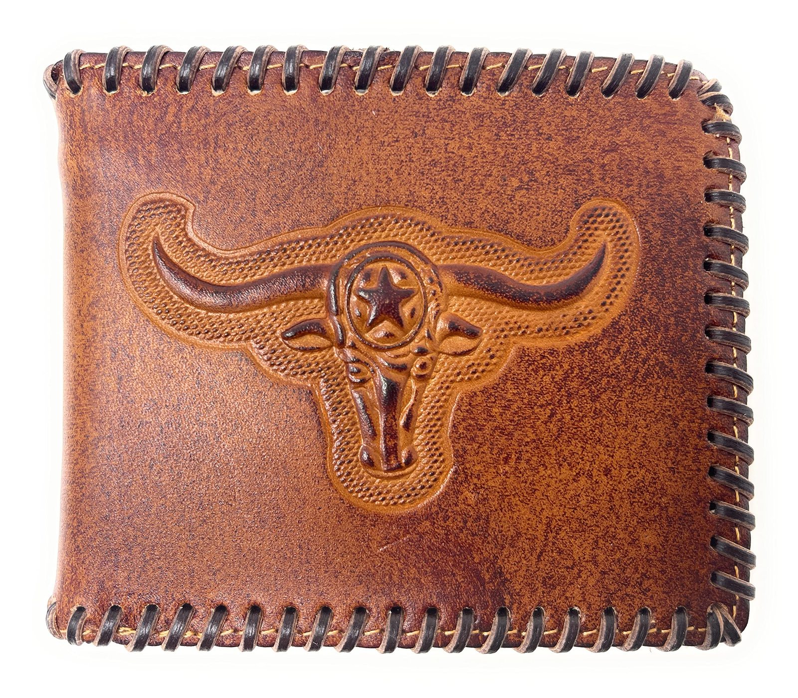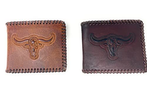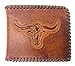 Western Men's Leather Longhorn Print Short Wallet in 2 colors (Brown)