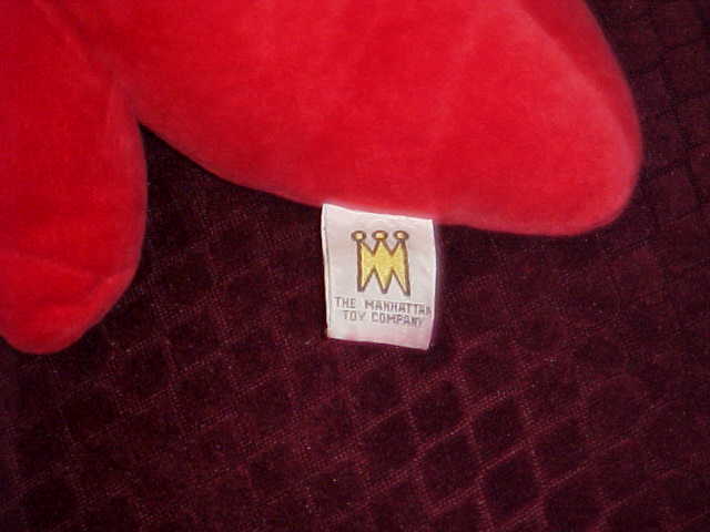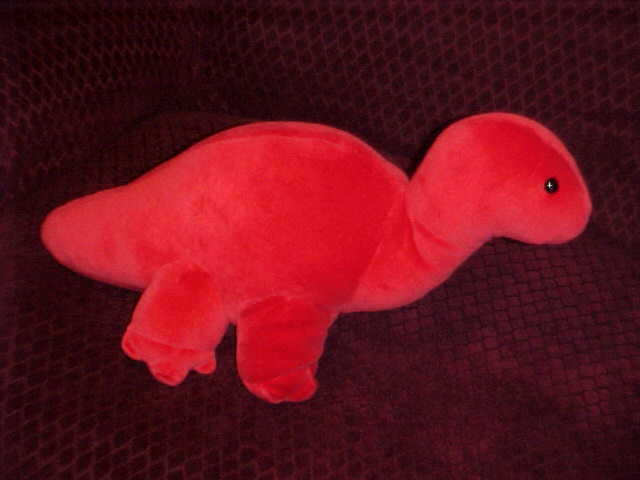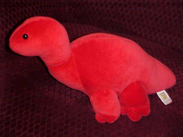 Hello everyone, Now at bottom of each of our item page is our rating plush chart. Please check it out and read full item description before using the buy it now price. Ok here's a extremely rare Red Brontasaurus Plush Dinosaur Toy From Manhattan Toy Company, which is not new or mint but in excellent use condition. All use toys are as is condition. Brontasaurus Dinosaur is red plush with shiny black eyes, and measures around 16 inches long. Tush body seam tag only reads, Manhattan Toy Company 1996. Please see picture's. Winner bidder pays by Zone and Zip Code for priority mail shipping (up to 2 lbs) with handling of (1.50 h-fee), plus required (.85) delivery confirmation US only. Sorry we do Not Ship to Canada or Internationally. Immediate Paypal payment is required when using Buy It Now, E-Checks from Paypal are held 3-5 business days until it clears before item is ship. Since we are limited on our picture space, pic will be deleted after the end of auction, so if you would like to see pic after the auction, please print out picture before the auction ends. We due not do returns or refunds, so Please read full item description, all sales are final and are sold as worded in item description. All items are being offer as is condition. Please take a moment and check out our other great Disney plush and character toys which are listed sale this week. New Rating Plush Chart. NEW: Comes from a factory or department store and has not played with. MINT Or LIKE-NEW: Looks new but might still been played with but shows no wear on the Plush itself but still might have a flaw (like a odor, etc., and might not been wash even though we strive very hard to make all our plush smell free but can not guaranteed them) EX. COND: Some minor play wear and might have some minor flaws which would be in the item description. VERY GOOD: Has been played with and has flaws. GOOD: Has been played with a lot. POOR: We try not to sell any real poor condition toys. Thank-You and Have A Fantastic Week
