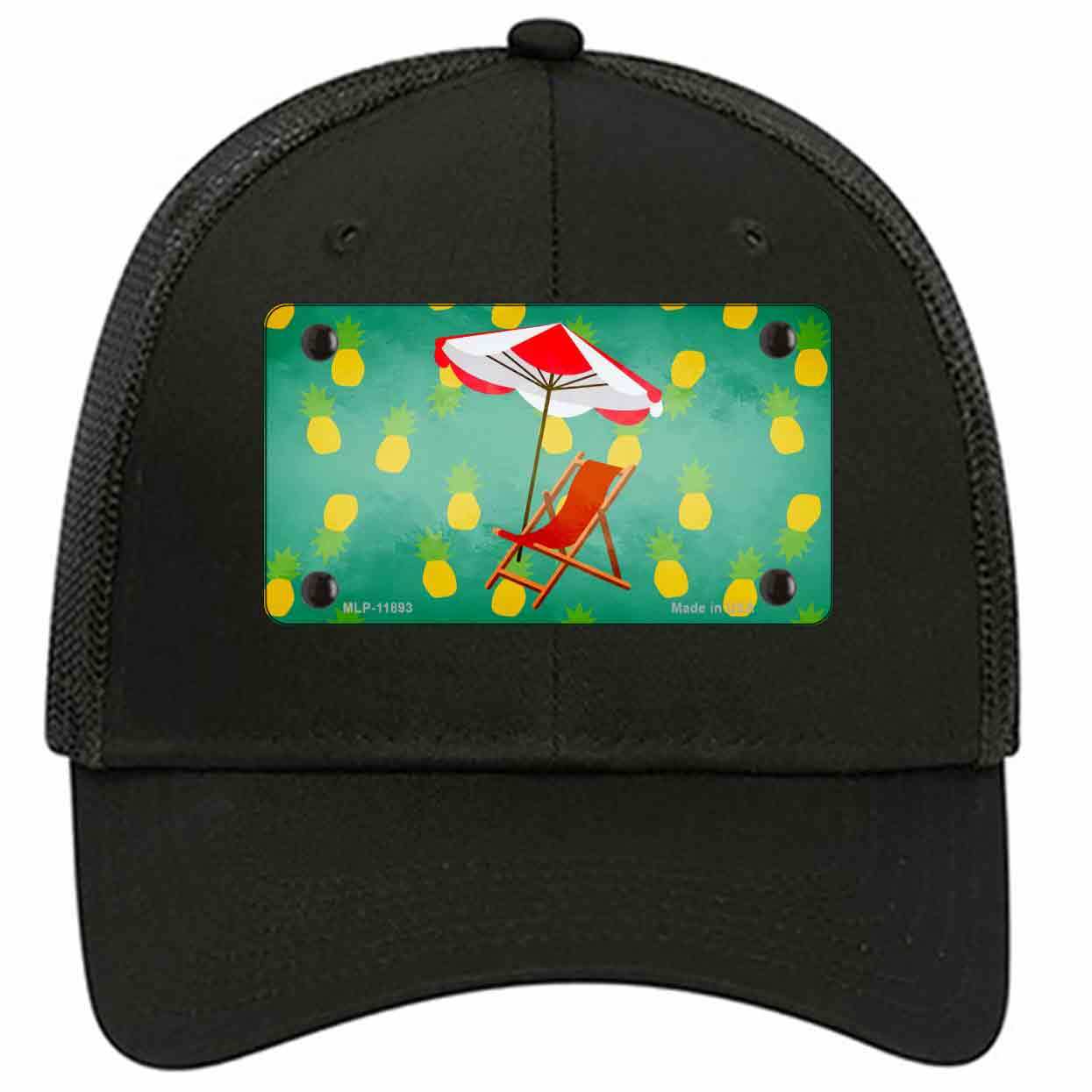 Chair and Umbrella Novelty Black Mesh License Plate Hat