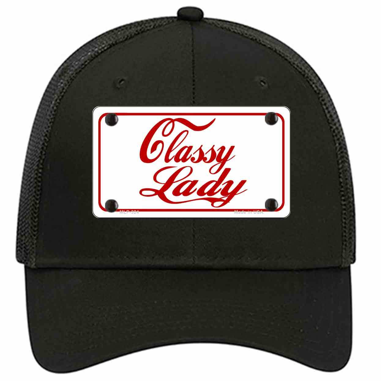 Classy Lady Novelty License Plate Hat. Show off your style with our mounted 4" x 2.2" metal patches on our 6 Panel SnapBack or Velcro Closer Hats. Choose between our different color and style caps. Our metal patches are made out of .025 grade aluminum and the designs are dye sublimated onto the metal to give a quality high gloss finish. Our metal patches are firmly attached using double cap rivets to give the patch an elegant tight fitting look!