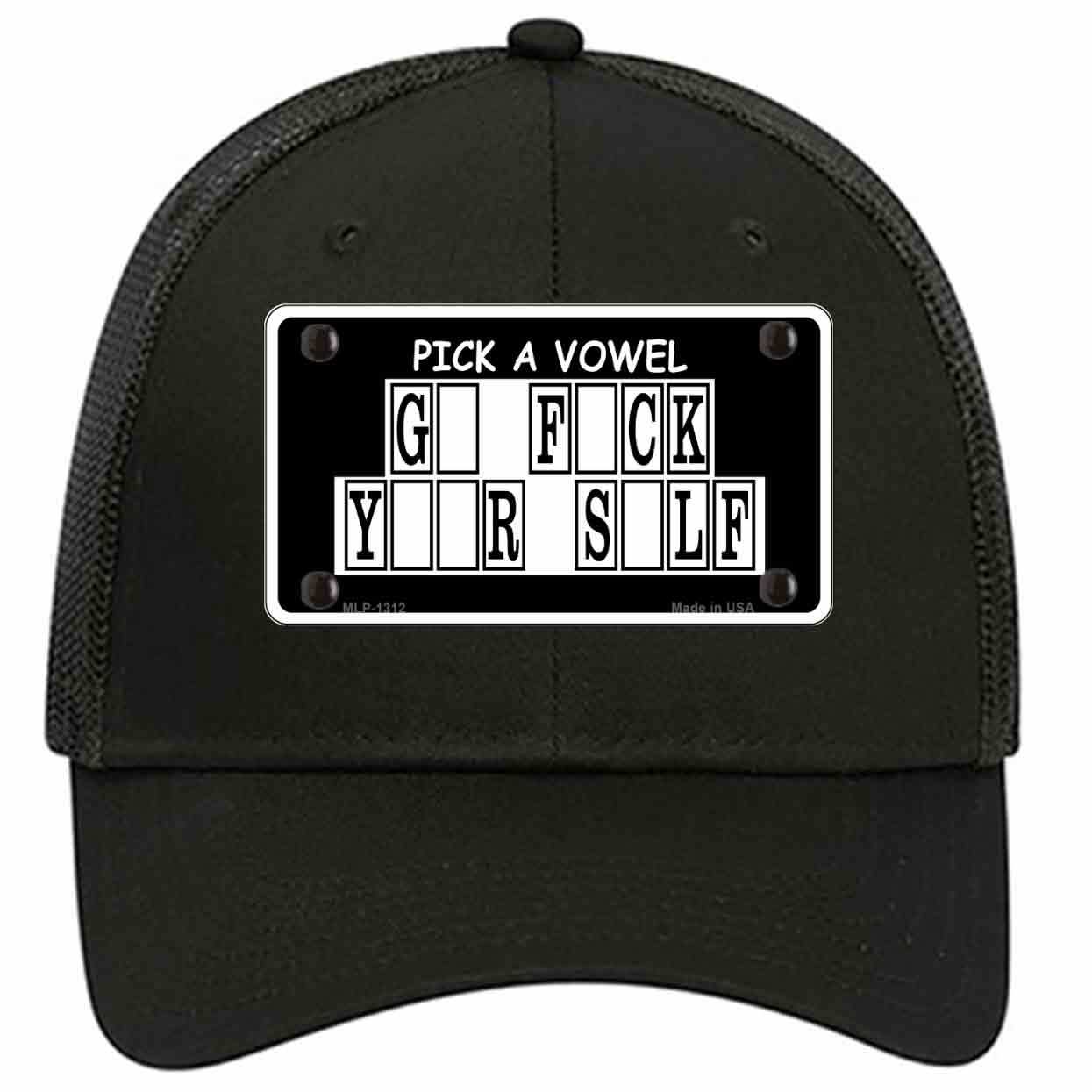 Pick A Vowel Novelty Black Mesh License Plate Hat