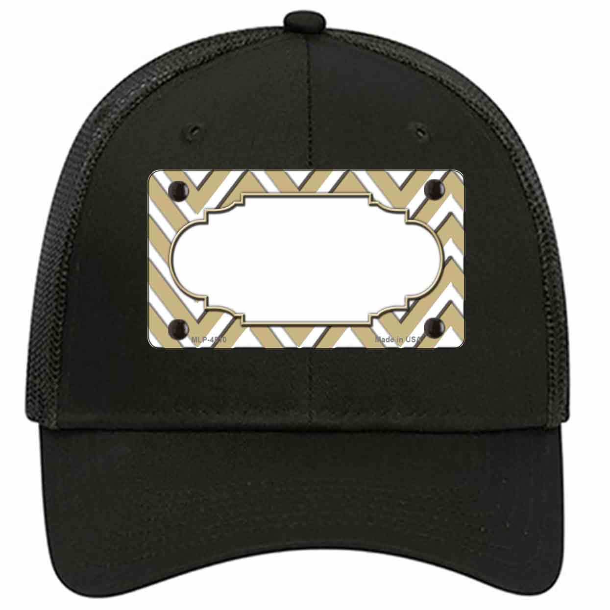 Gold White Large Chevron Center Scallop Novelty Black Mesh License Plate Hat