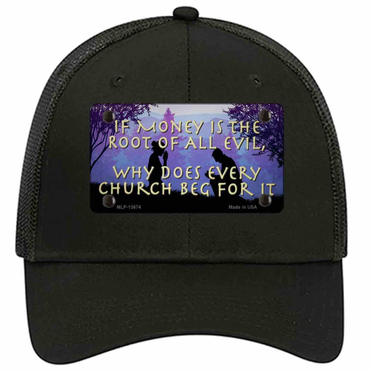 Money Is Root Of All Evil Novelty Black Mesh License Plate Hat Tag